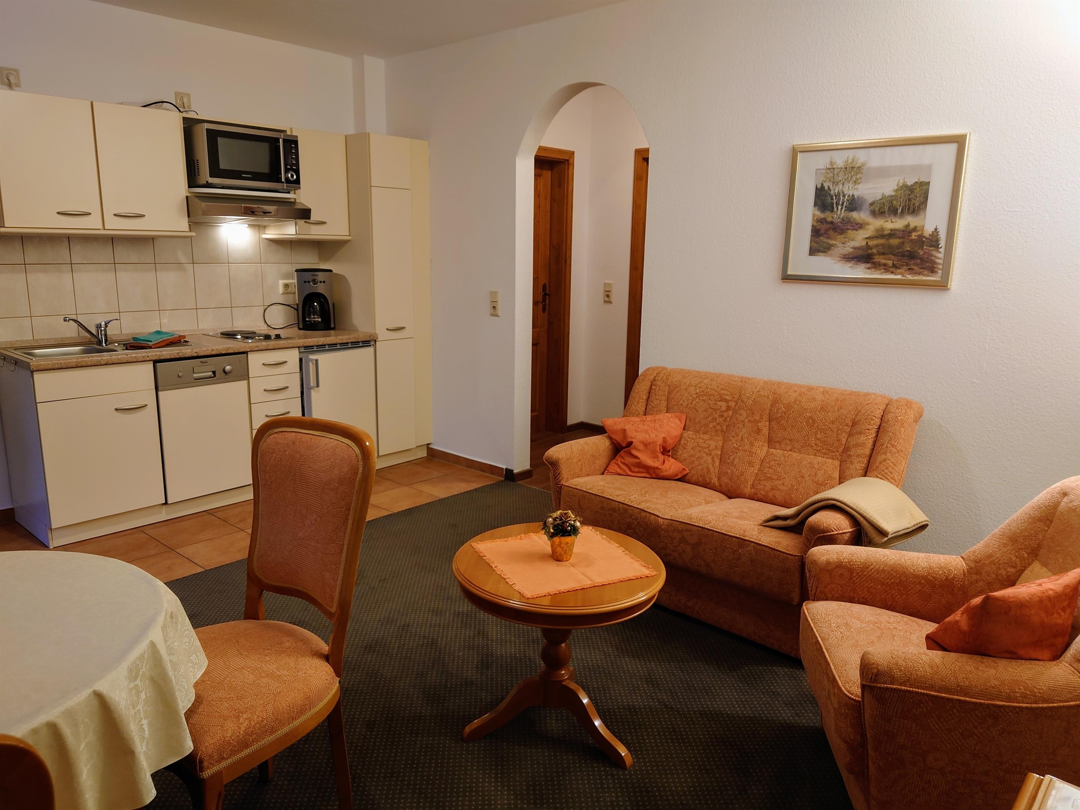 Ein Wellnessbereich mit Ruheraum, Erlebnisdusche, Fußwärmebecken, Sauna und Dampfbad steht allen Gästen in der Zeit von 16:00 Uhr bis 18:30 Uhr kostenlos zur Verfügung. Der Fitnessraum ist ständig zugänglich. Kostenfreie Parkmöglichkeiten befinden sich direkt vor dem Haus. Hier können sie auch ihr Elektroauto nachhaltig mit einer Wallbox aufladen. Eine Gaststätte ist ca. 100 Meter entfernt wo sie auch vorab Frühstück, Abendessen oder Halbpension (3-Gänge- Wahlmenü) buchen können