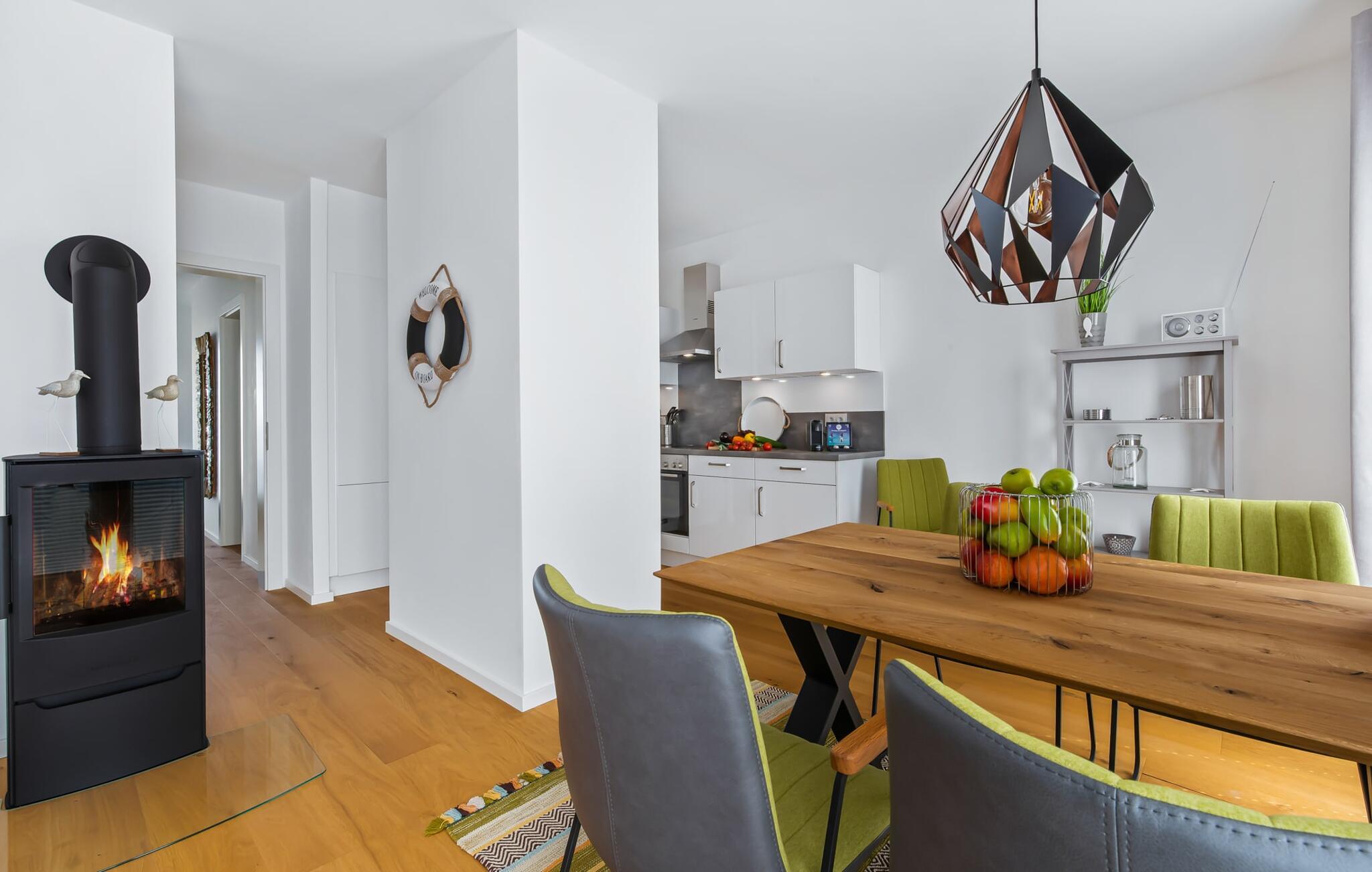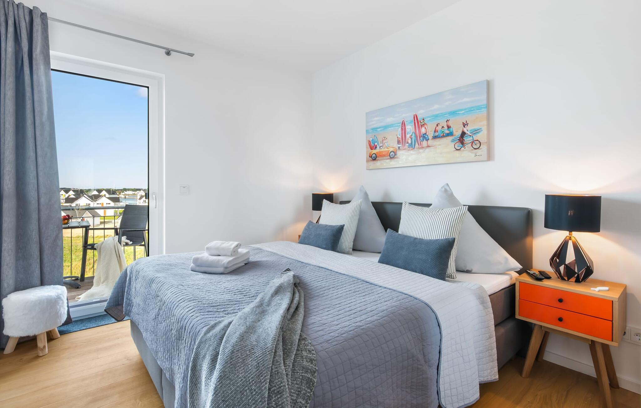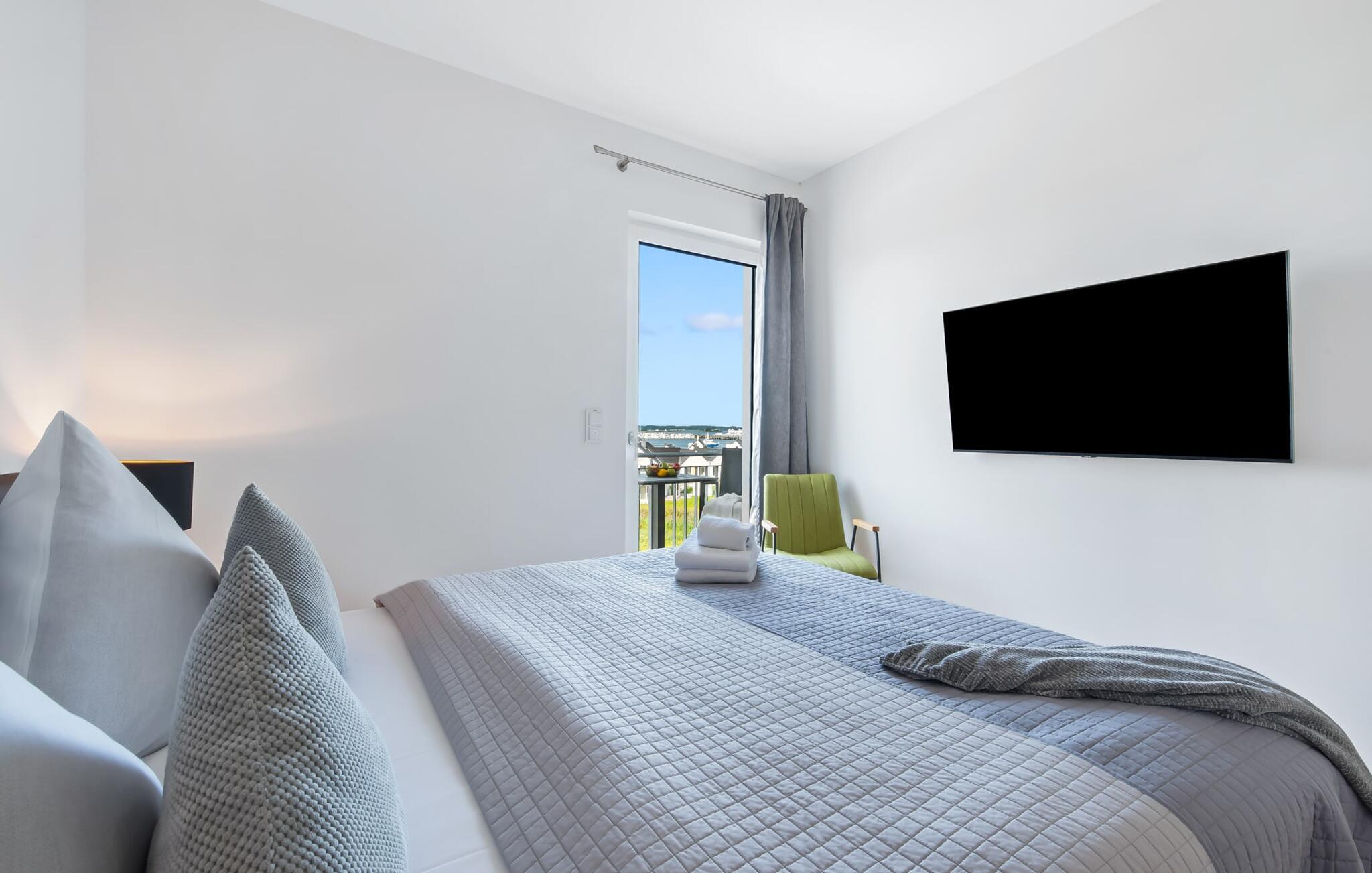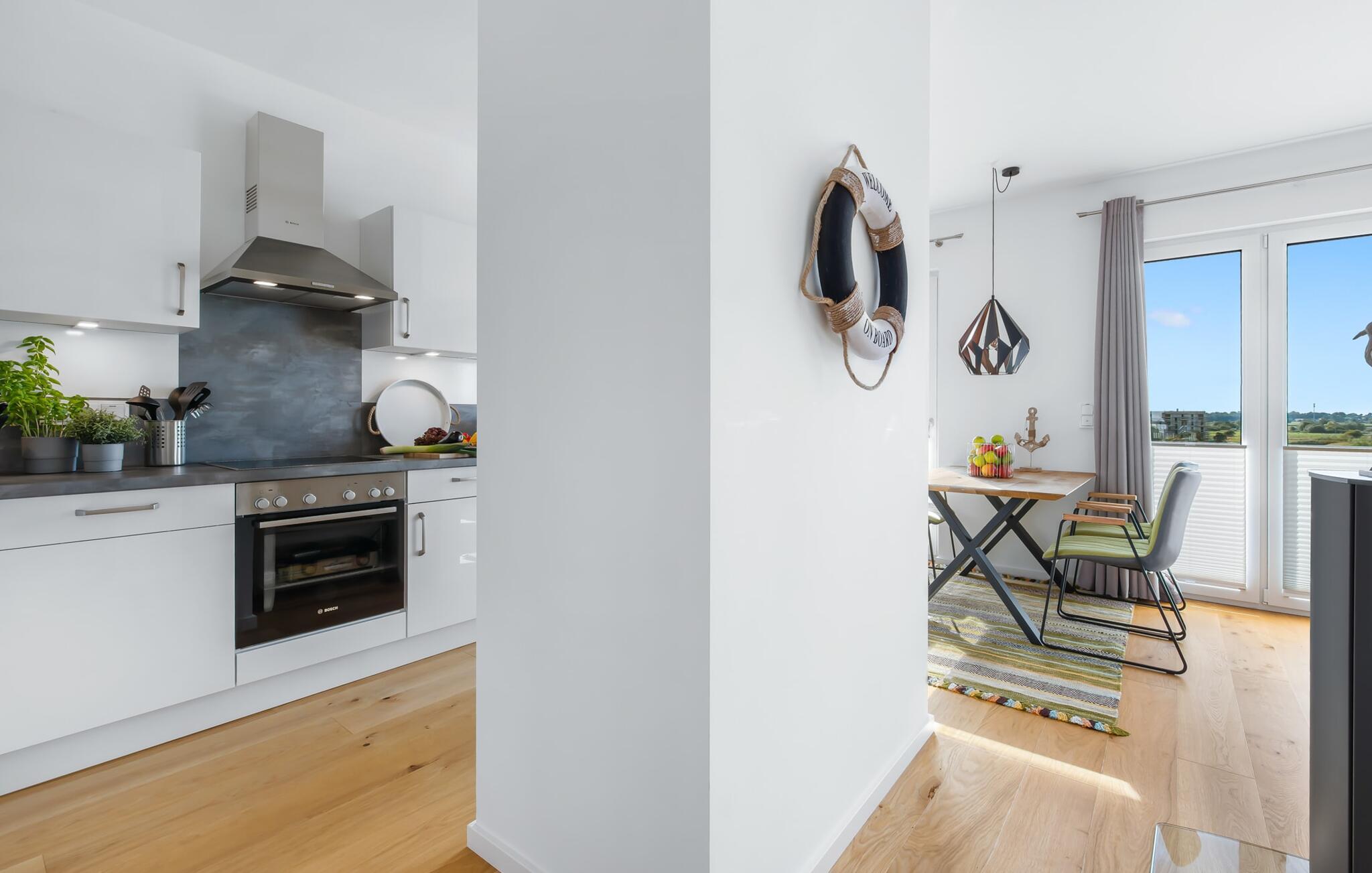 Denne skønne ferielejlighed til fire personer byder på alt, hvad man kan ønske sig til en ferie ved Østersøen. Beliggende direkte ved Østersøen er det kun et stenkast til Weidefelder sandstrand. Udover solbadning og svømning kan I også hygge jer i HUMMER-restauranten. Hvis stranden ikke er populær, kan I nå den populære Adventure Golf på få minutters gang. SOUNDS OF THE SEA er moderne, nordisk og indrettet med masser af ægte træ og parketgulvet i alle rum sikrer, at I føler jer godt tilpas fra første øjeblik. Vinduesfronten fra gulv til loft i den åbne stue/alrum tilbyder en betagende udsigt over den brede Østersø og sikrer vandbiograf hele dagen uden at blive kedelig. Træd ind på den tilstødende balkon og duft ikke kun den friske havluft, men lyt også til de lovede LYDE AF HAVET. Det hyggelige sofahjørne med TV og pejs inviterer til afslapning og gulvvarmen sørger for, at der er hyggeligt selv i den kølige årstid. Det lyse, integrerede køkken tilbyder selv kokkefagfolk alt, hvad de behøver for at tilberede lækre måltider, som derefter kan nydes sammen på balkonen med uendelig udsigt over vandet. De to soveværelser er hver udstyret med en dobbelt boxmadrasser og et fjernsyn, så en afslappende søvn er garanteret. En anden altan inviterer jer til at nyde en sundowner med udsigt over det store havnebassin, inklusive betagende solnedgange. Bruserummet med brusebad i gulvniveau lader heller intet tilbage at ønske og har alt hvad I behøver for en vellykket start på en ny feriedag. For at komme til ferieidyllen fra den underjordiske parkeringsplads (indgangshøjde: 2m), kan I enten vælge den sporty mulighed og bruge trappeopgangen eller komme ind i den tilgængelige elevator. Vores favoritsted: At lytte til HAVETS LYDE på balkonen og nyde den fænomenale udsigt over vandet... Bemærk venligst: OstseeResort Olpenitz er meget populært, og der bygges fortsat i parken. Ikke desto mindre kan I se frem til en 5-stjernet standard og et førsteklasses ophold. Byggeaktiviteterne kommer ikke til at forstyrre jer på ferien, og derfor gives der ikke yderligere afslag i prisen.