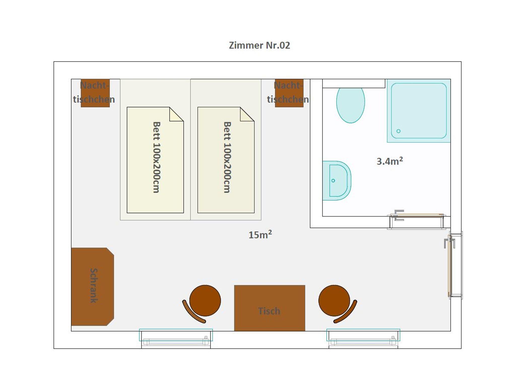 Schellenberger Hof, Doppelzimmer 2 mit Dusche/WC, 16 m²