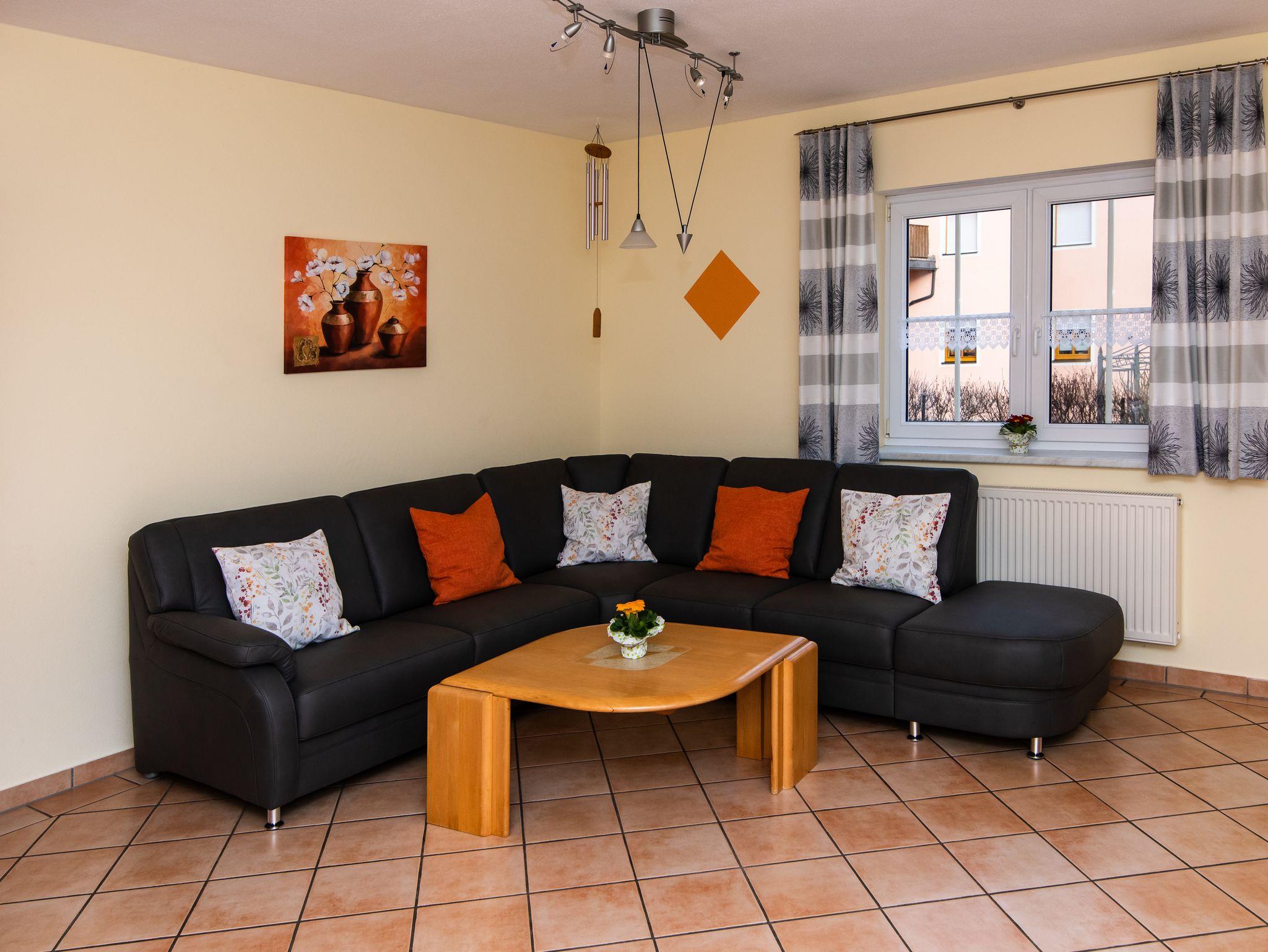 Erholung und Entspannung Urlaub zu zweit oder mit der Familie... Wir laden Sie herzlich ein in unser familienfreundliches Ferienhaus mit Blick auf den Brombach- und Igelsbachsee. Unser Haus befindet sich in sonniger Südhanglage mit fünf liebevoll eingerichteten Ferienwohnungen, mit großer Terrasse oder Balkon. Die Wohnungen sind gemütlich und komfortabel, Wischböden, WLAN, 1 bis 3 Schlafzimmern, Wohnküche mit Essplatz, großem Wohnraum, Du/WC mit Fußbodenheizung und Fön, SAT-TV, Spülmaschaschine, Mikrowelle und kleinkindgerechter Ausstattung. Aufenthaltsraum mit Küche und Spielecke. Großem Garten mit Grillplatz, Rutsche, Trampolin, Schaukel, Spielhaus, Tischtennis, Kett-Cars, Traktoren sowie Dreiräder bieten den Kindern viel Abwechslung und Spaß. Kleintiere wie Ziegen, Hasen und Katzen freuen sich auf Streicheleinheiten. - Waschmaschine vorhanden - Bettwäsche/Handtücher inklusive.