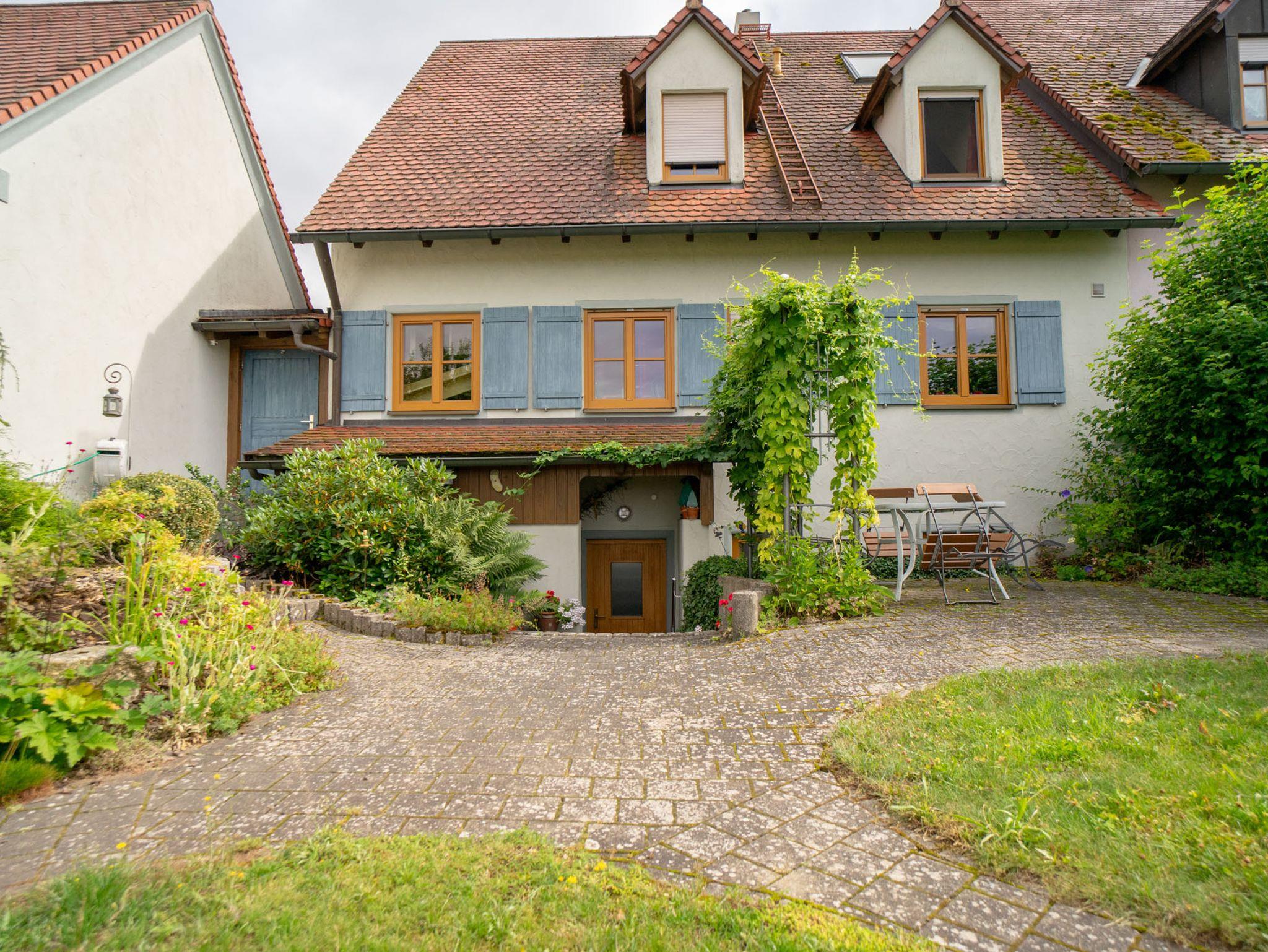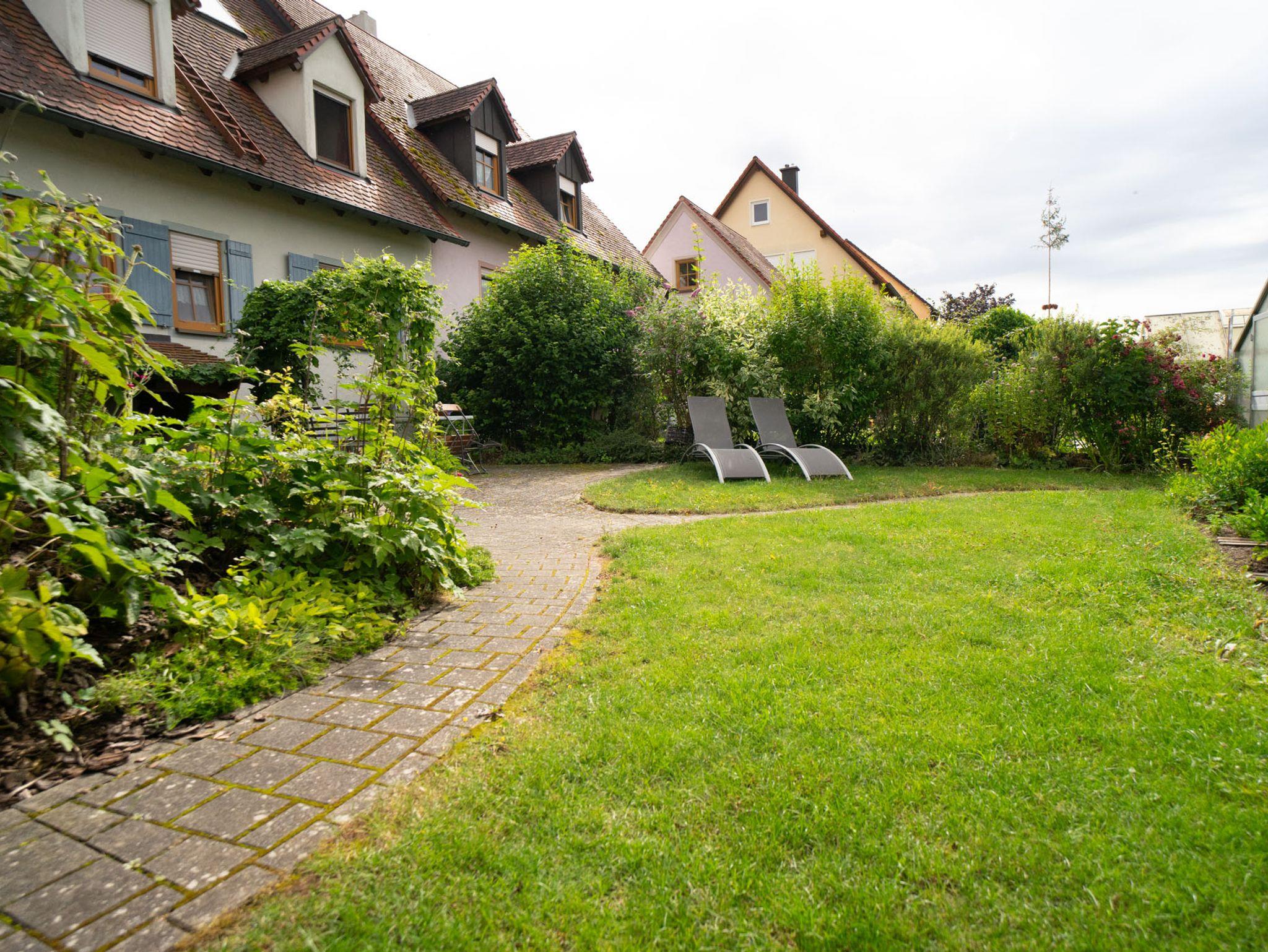 in unserem Einfamilienhaus in ruhiger romantischer Lage am Ortsrand, abseits der Straße, zwischen Kirschen- und Hopfengärten, in Waldnähe, am IVV-Wanderweg, mit herrlichem Ausblick in das Spalter Hügelland.