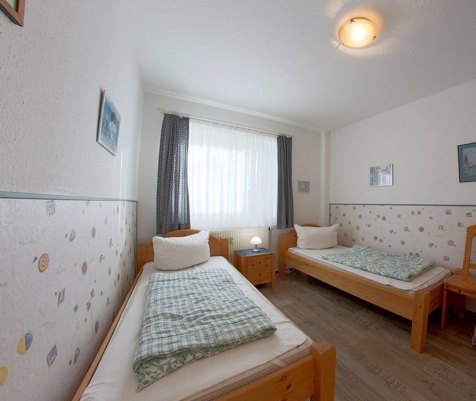 Ein Schlafzimmer mit Doppelbett und ein weiteres Schlafzimmer mit 2 Einzelbetten sorgen für erholsamen Schlaf. Bettwäsche und Handtücher sind nicht inklusive, können aber dazugebucht werden. Laminatböden in den Schlafräumen.