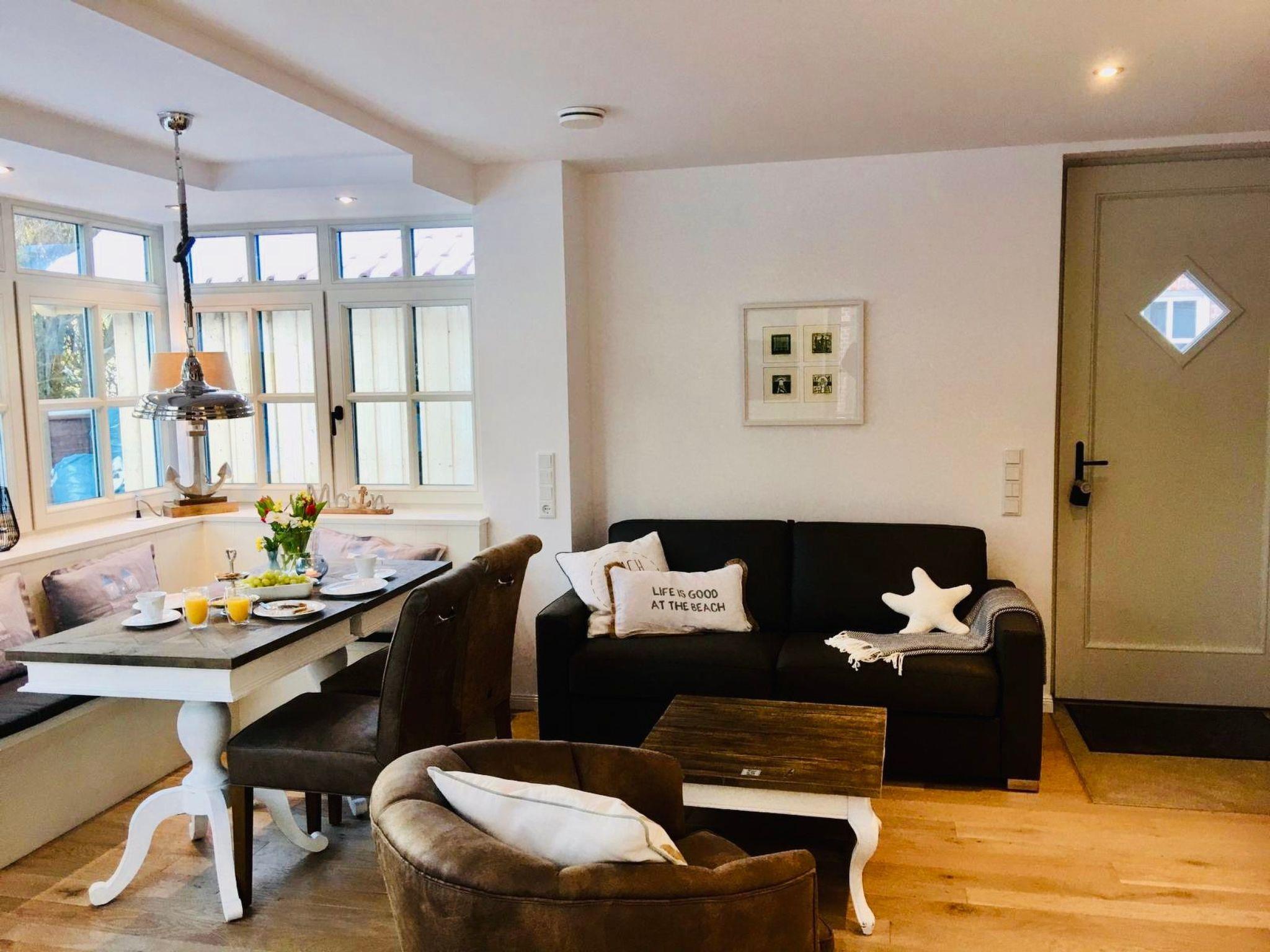 Our holiday home "InselParl" extends over 3 floors with a living space of 76 square metres for max. 5 persons. It is exclusively furnished to a high standard and has a spacious living, dining and cooking area, 2 bedrooms, 2 shower rooms, 1 sauna, 1 sun shower/infrared light and underfloor heating and automatic ventilation on each floor. Outside there is also a lovely wooden terrace with comfortable garden furniture and a small lawn-lounger area.