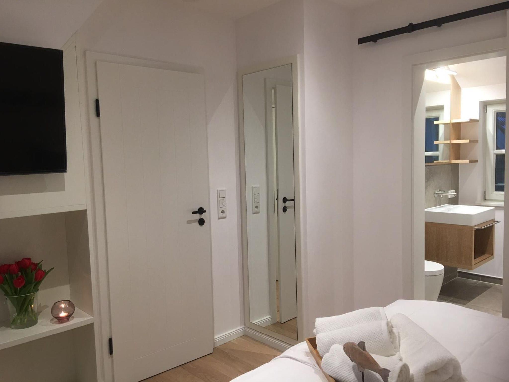 Our holiday home "InselFreid" extends over 3 floors with a living space of 63 square metres for max. 4 persons. It is exclusively furnished to a high standard and has a spacious living, dining and cooking area, 2 bedrooms, 2 shower rooms, 1 sauna, 1 sun shower/infrared light and underfloor heating and automatic ventilation on each floor. Outside there is also a lovely wooden terrace with comfortable garden furniture and a small lawn-lounger area.