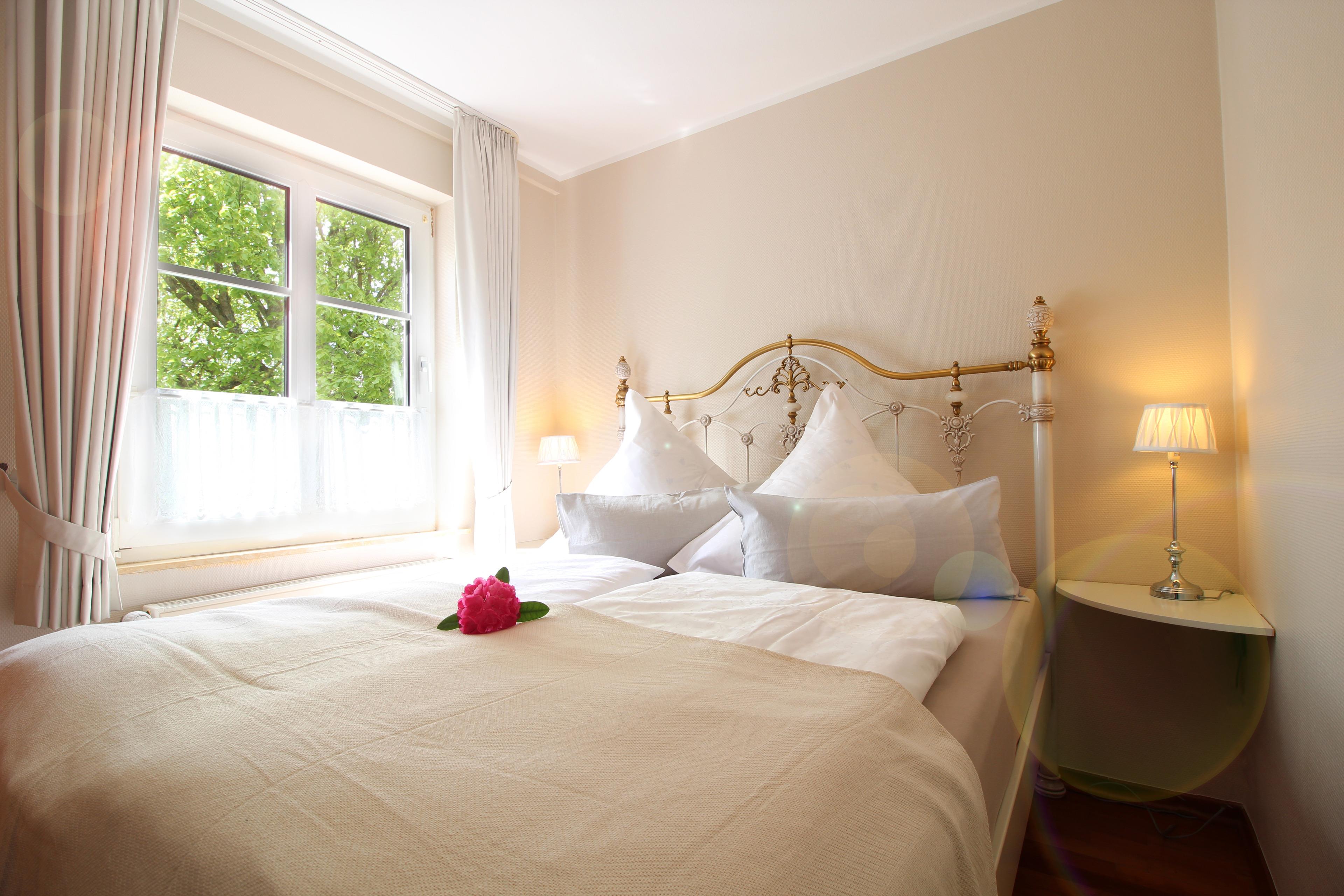 Unsere gemütliche Ferienwohnung im ersten Obergeschoss ist etwa 35 qm groß und ideal für zwei Personen. Der Blick aus den Fenstern fällt direkt auf die Alte Inselkirche – ein ganz besonderer Ort mit Geschichte und Seele.