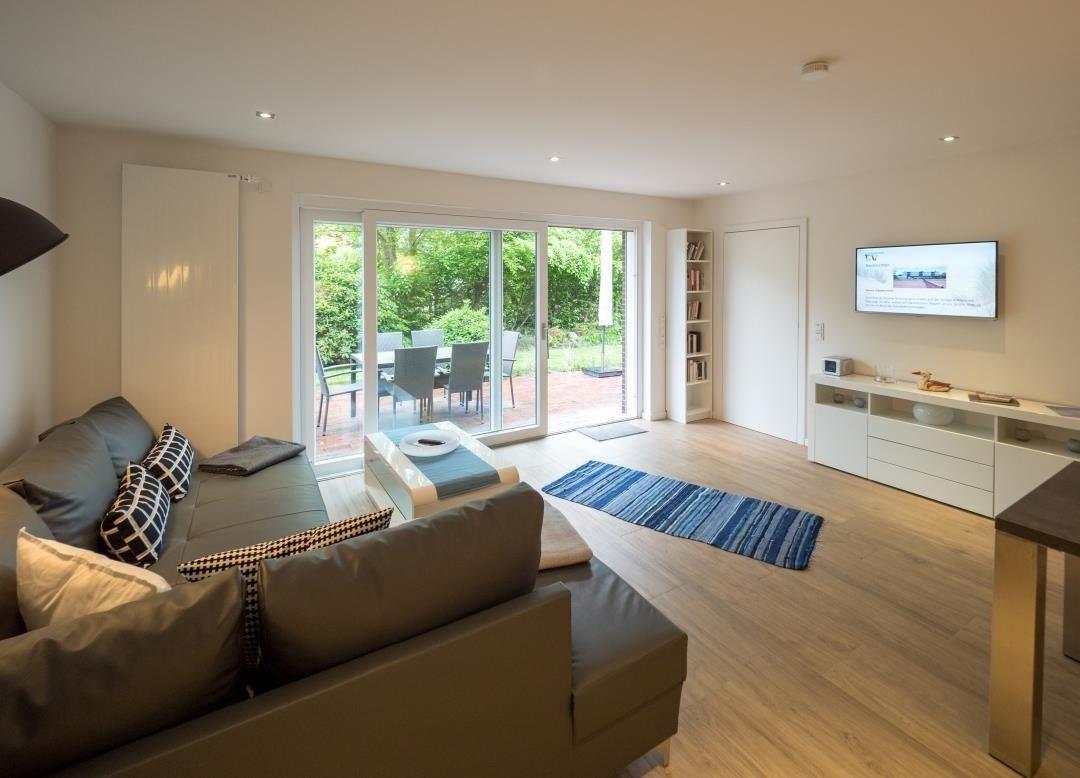 Die gut ausgestattete Wohnung bietet Platz für vier Personen (Kinder ab 5 Jahren sind gerne Willkommen), ist ebenerdig mit Blick auf die Südterrasse und in den Garten. Ein Gartentisch mit 6 Stühlen und 2 Liegen bieten Ruhe und Erholung.