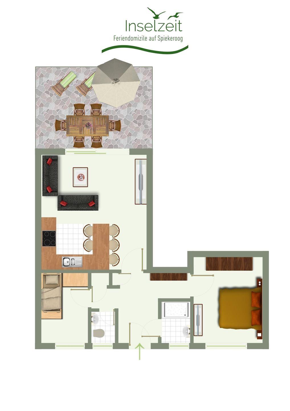 Gut ausgestattete Wohnung für vier Personen mit ebenerdiger Südterrasse verspricht einen erholsamen Urlaub in ruhiger Lage im Osten des Dorfes.