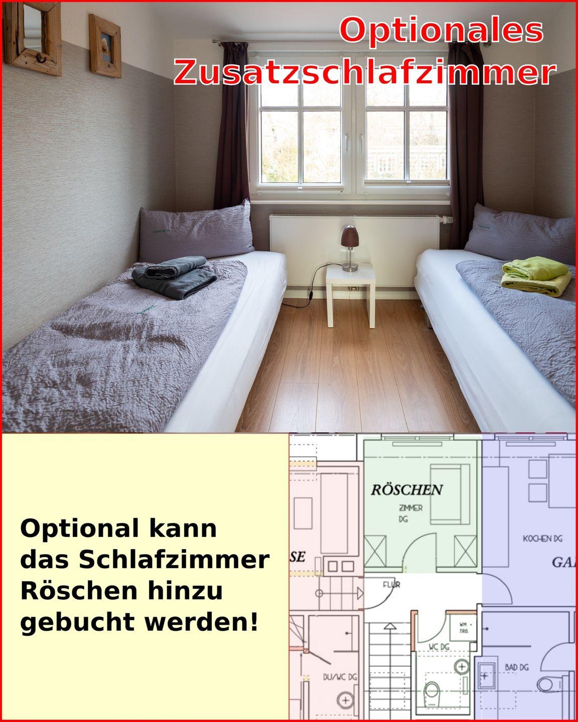 Zusätzlich kann das Gästezimmer Röschen im Obergeschoss für 1-2 Personen hinzugebucht werden, um Ihren Aufenthalt noch angenehmer zu gestalten.