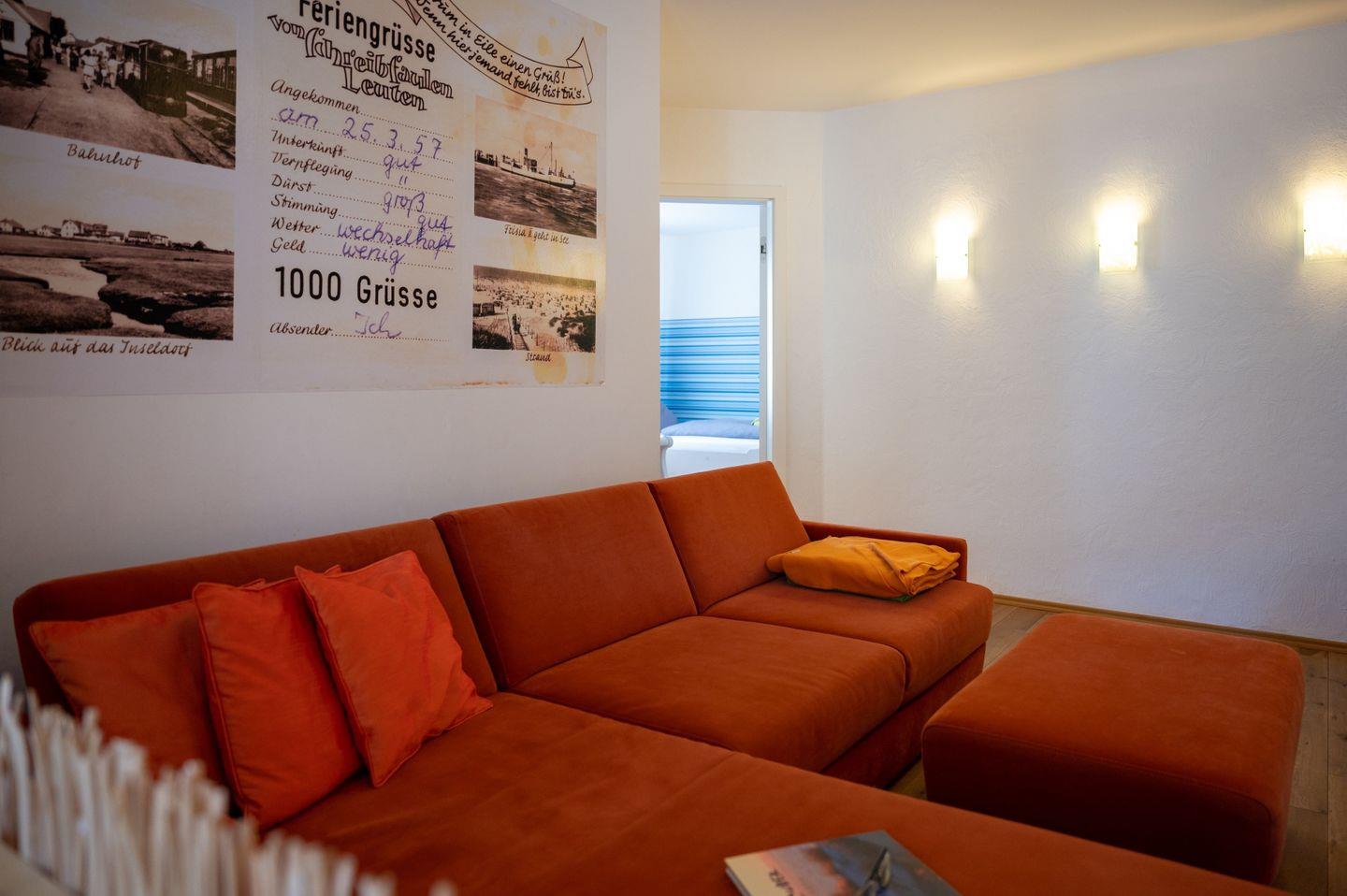 In allen Schlaf- und Wohnräumen ist ein ölimprägnierter Dielenfußboden verlegt. Der Ess-, Küchen- und Arbeitsbereich ist mit einem besonderem Natursteinfußboden und zusätzlicher Fußbodenheizung ausgestattet und strahlt wohnliche Wärme aus. Von hier haben Sie den direkten Zugang zu der meist sonnigen Terrasse und dem herrlichen Garten. Die Wohnung ist mit allem ausgestattet, was Sie für einen erholsamen Inselurlaub benötigen und lassen Sie zu jeder Jahreszeit wunderschöne Tage auf dieser besonderen ostfriesischen Insel erleben.