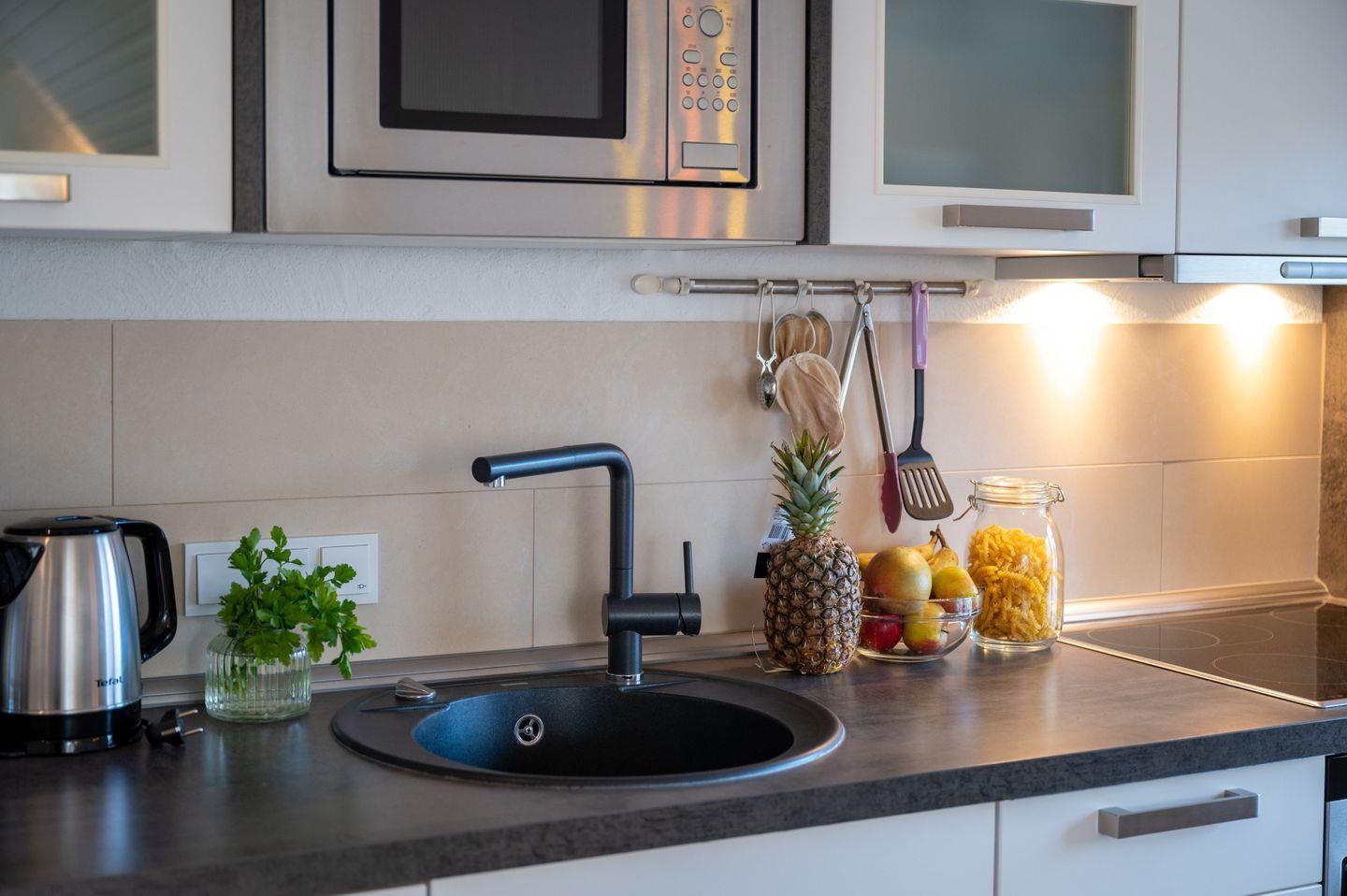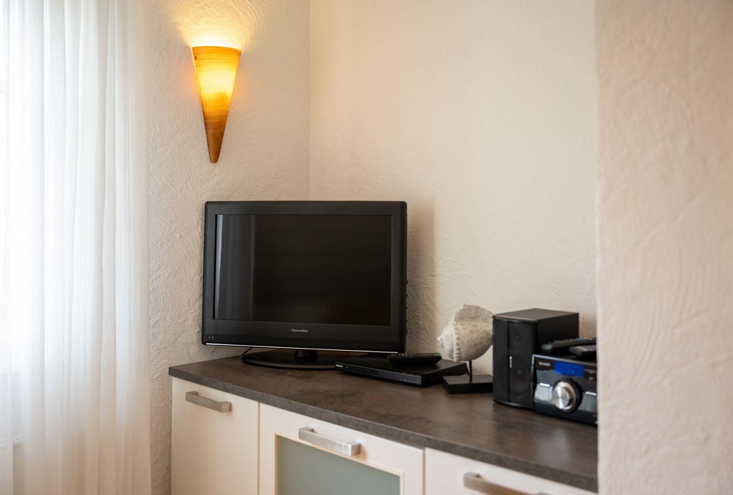 Die Wohnung im Obergeschoss bietet Platz für 2-3 Personen auf großzügigen 35qm. Ausgestattet mit einem Flachbild-TV, Stereoanlage, WLAN und einer Küche inklusive Mikrowelle, Backofen und Geschirrspüler, lässt es sich hier wunderbar entspannen.