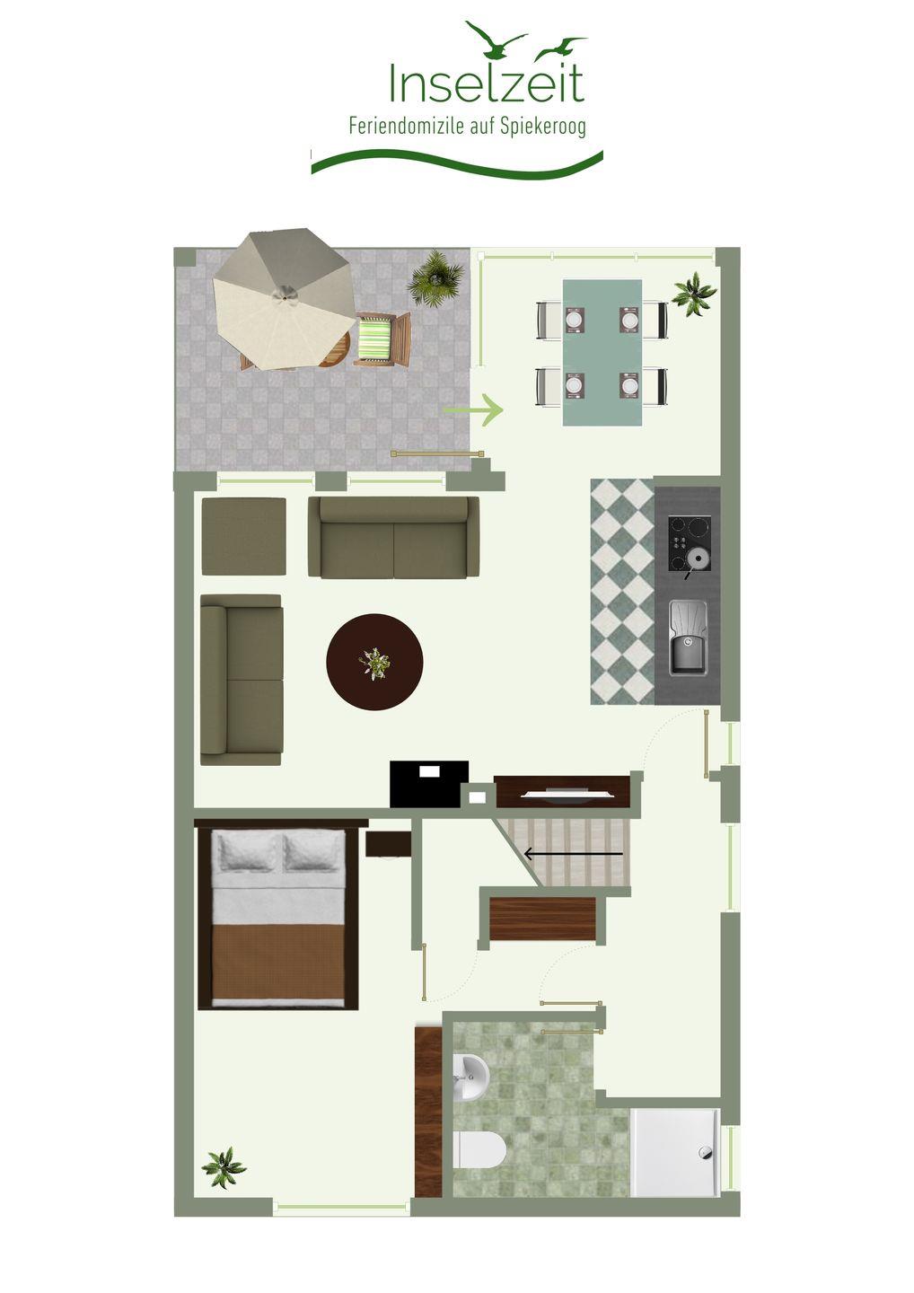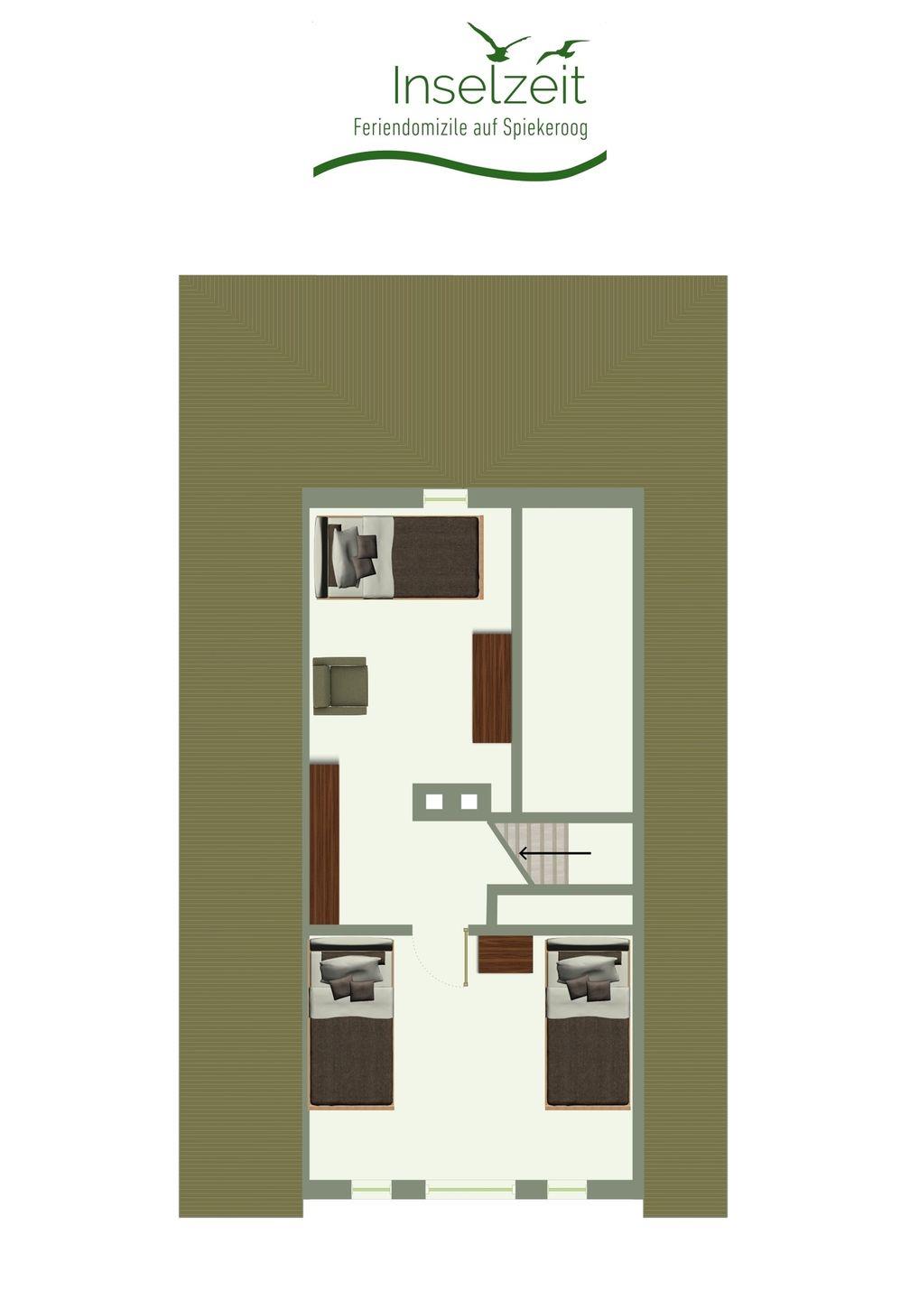 Das denkmalgeschützte Haus bietet Platz für fünf Personen. Hat zwei Schlafzimmer, Dusche/WC und Wohn-/Esszimmer mit offener Küchenzeile. Das Schlafzimmer im 1. Stock ist offen. Das Haus ist bauartbedingt nicht barrierefrei und für Rollator-/Rollstuhlnutzer nicht geeignet. Der Garten ist eingezäunt und liegt zusammen mit dem großen Drifthuus.