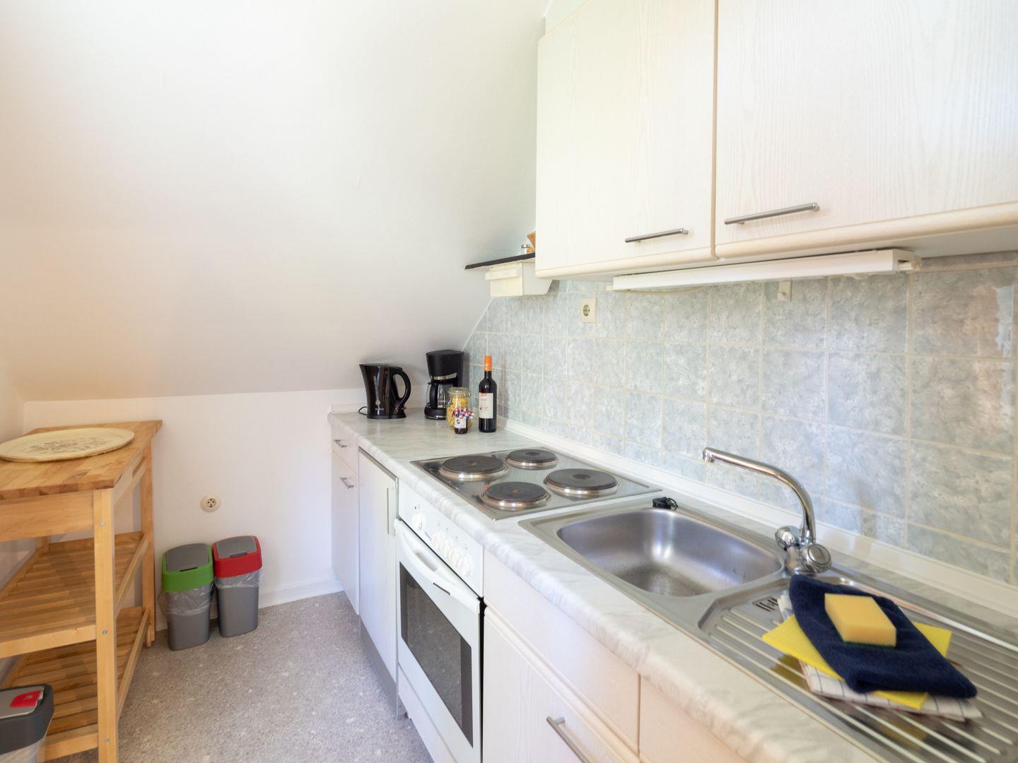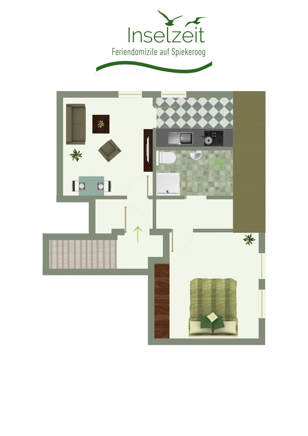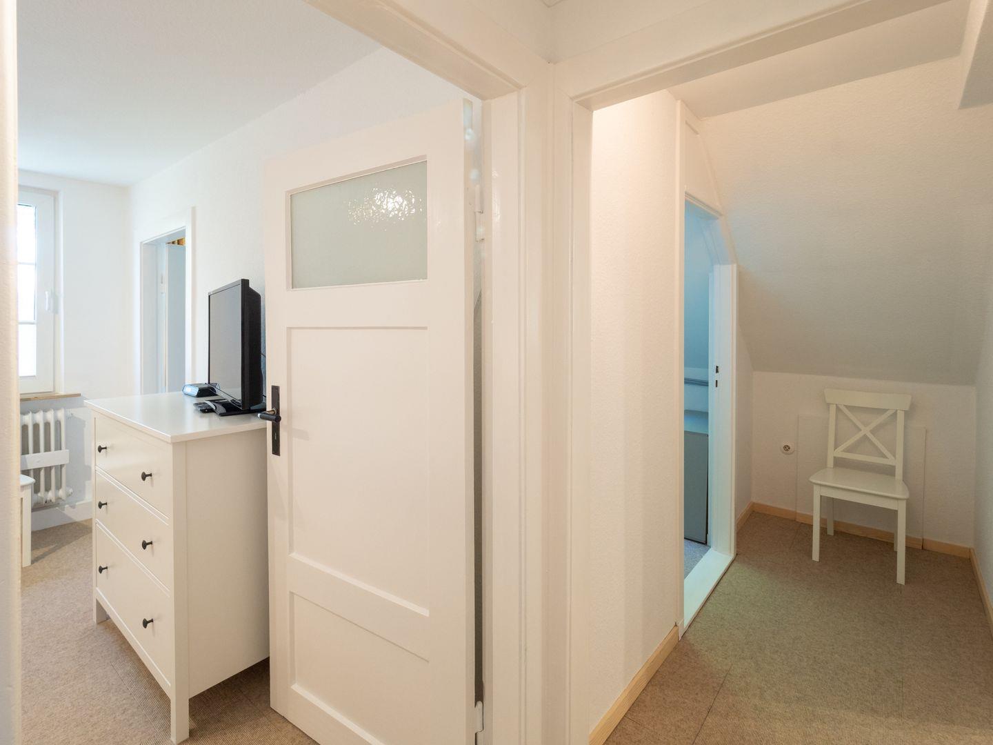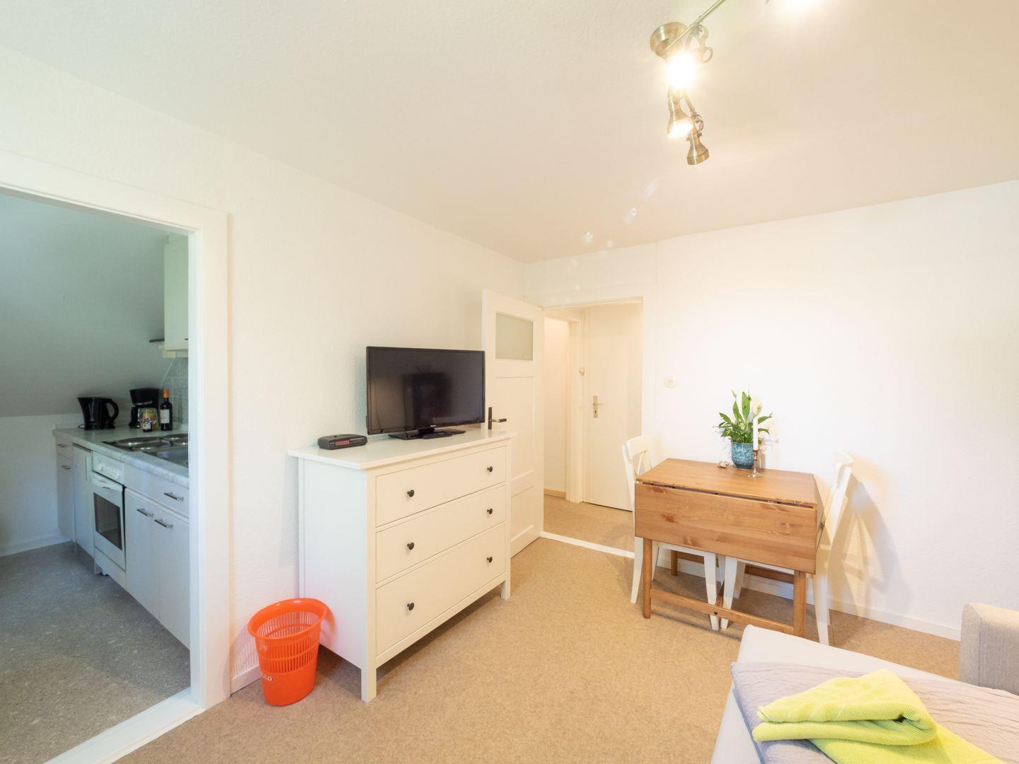 Die Wohnung bietet Platz für drei Personen (+ ein Kleinkind) und Hund. Schlafzimmer, Bad mit Dusche/WC, Wohnzimmer und Küche. Die Wohnung liegt im alten Inseldorf.