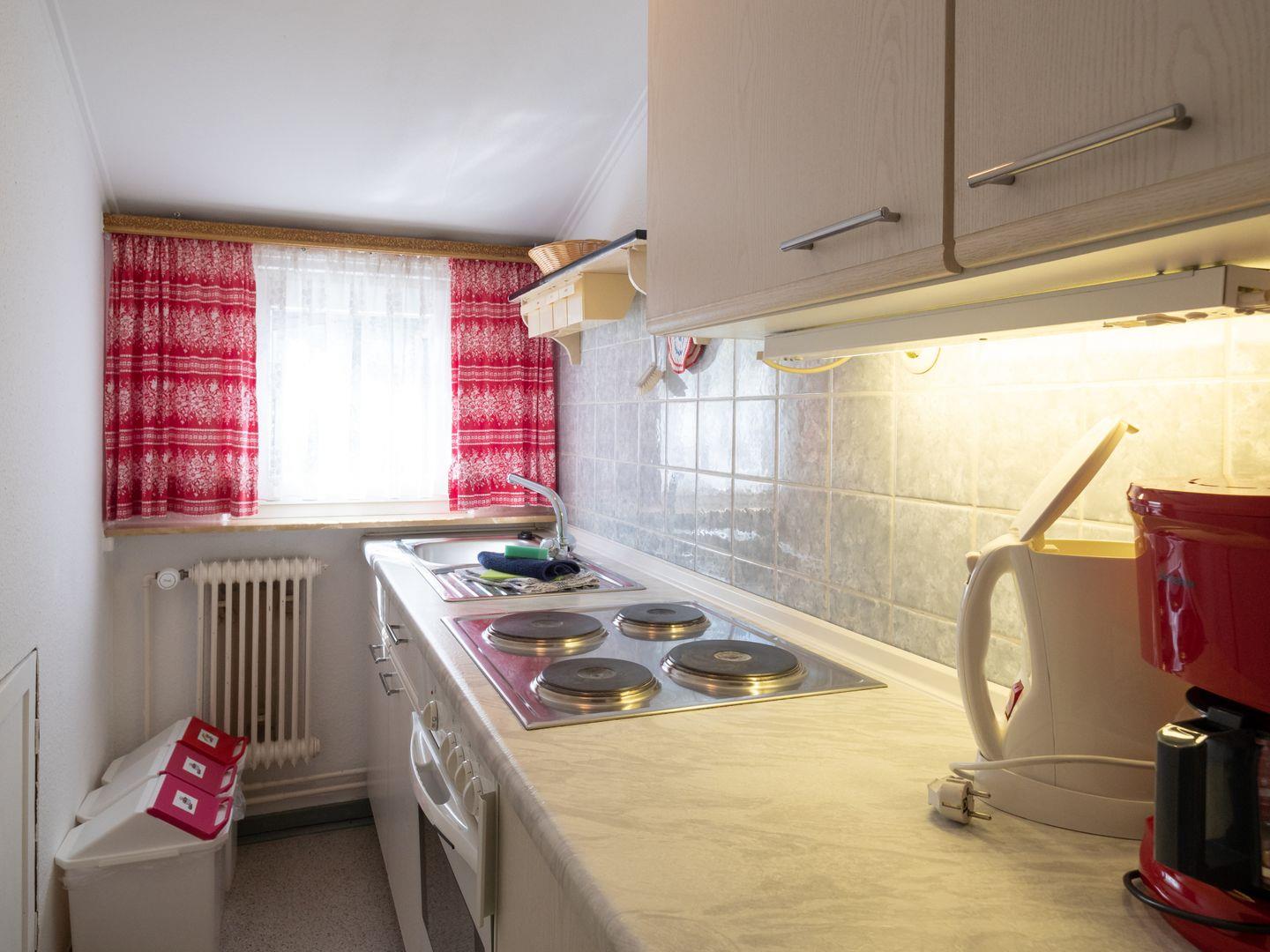Die Wohnung bietet Platz für zwei Personen und ein Hund. Schlafzimmer, Bad mit Dusche/WC, Wohnzimmer und Küche. Die Wohnung liegt im alten Inseldorf.