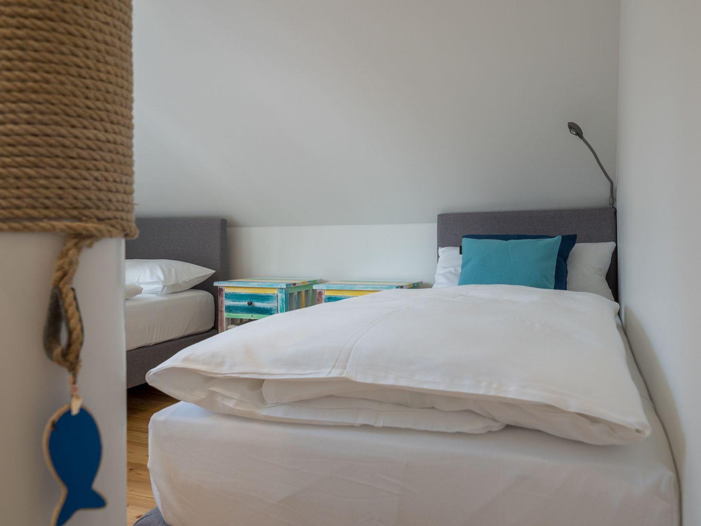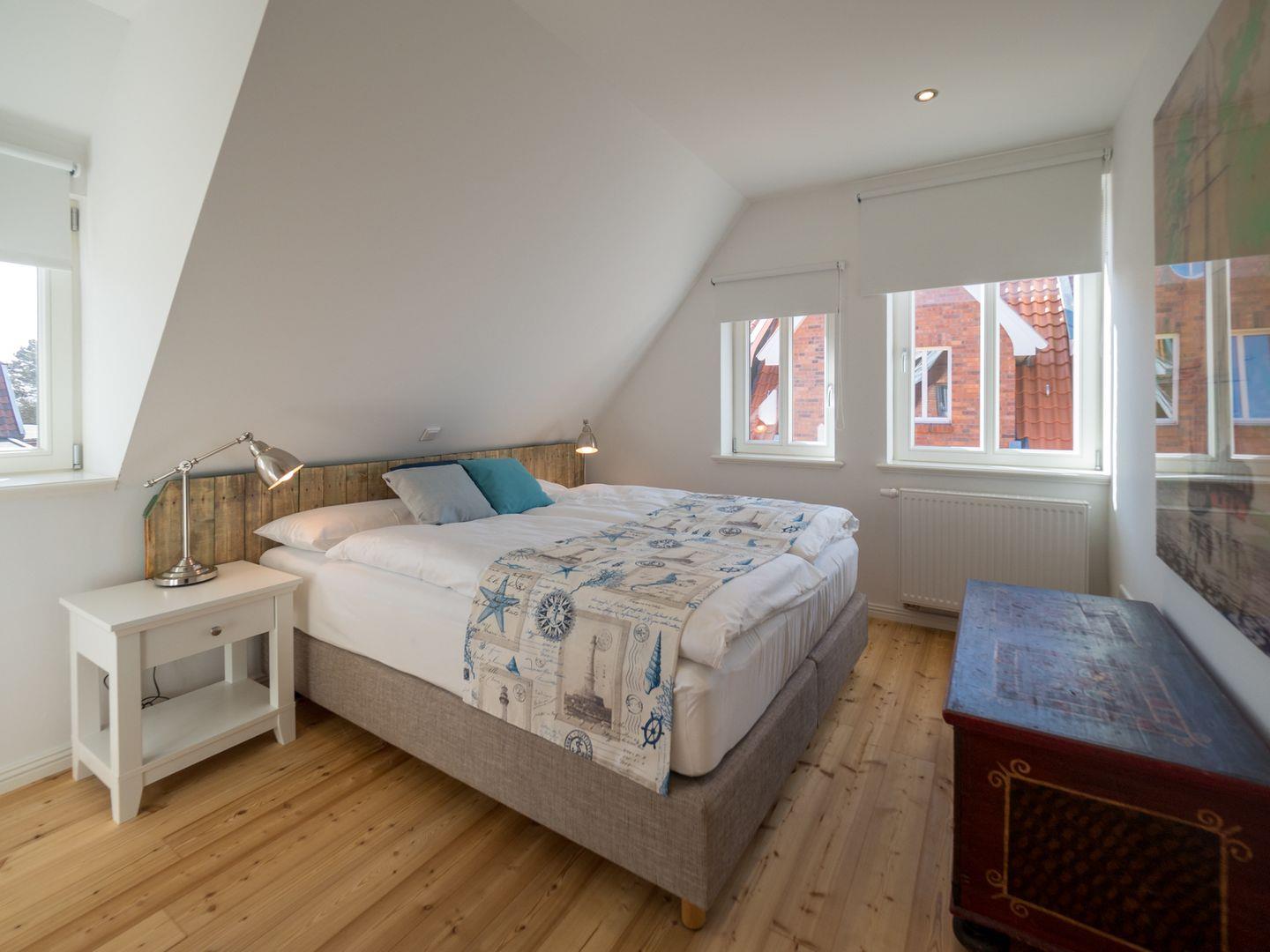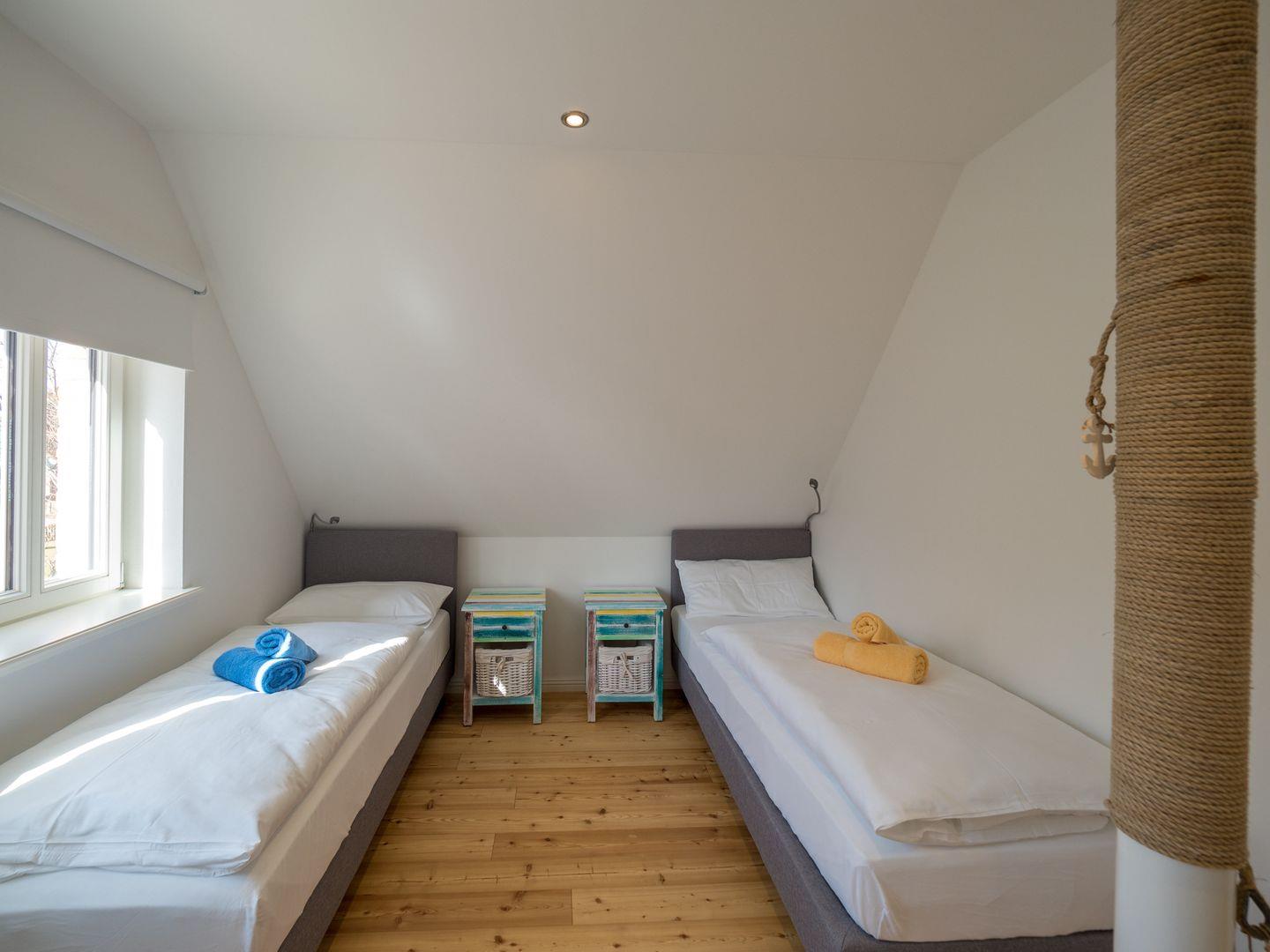 Die beiden Schlafzimmer im Obergeschoss sind mit 4 Luxus Boxspringbetten (ein Doppel, zwei Einzel) ausgestattet. Weitere Reisebetten sind möglich. Ein Bad mit Dusche ist ebenfalls vorhanden.