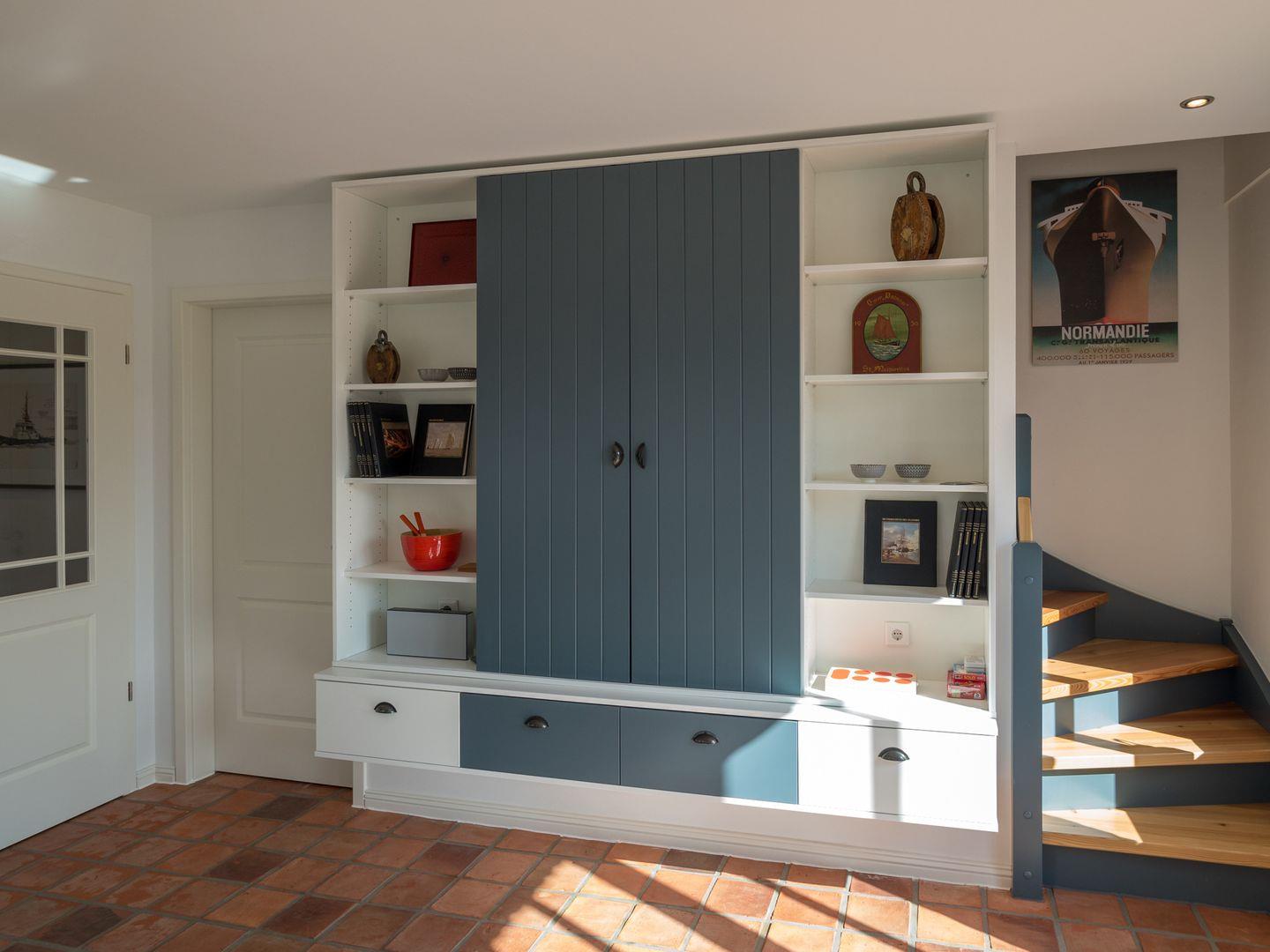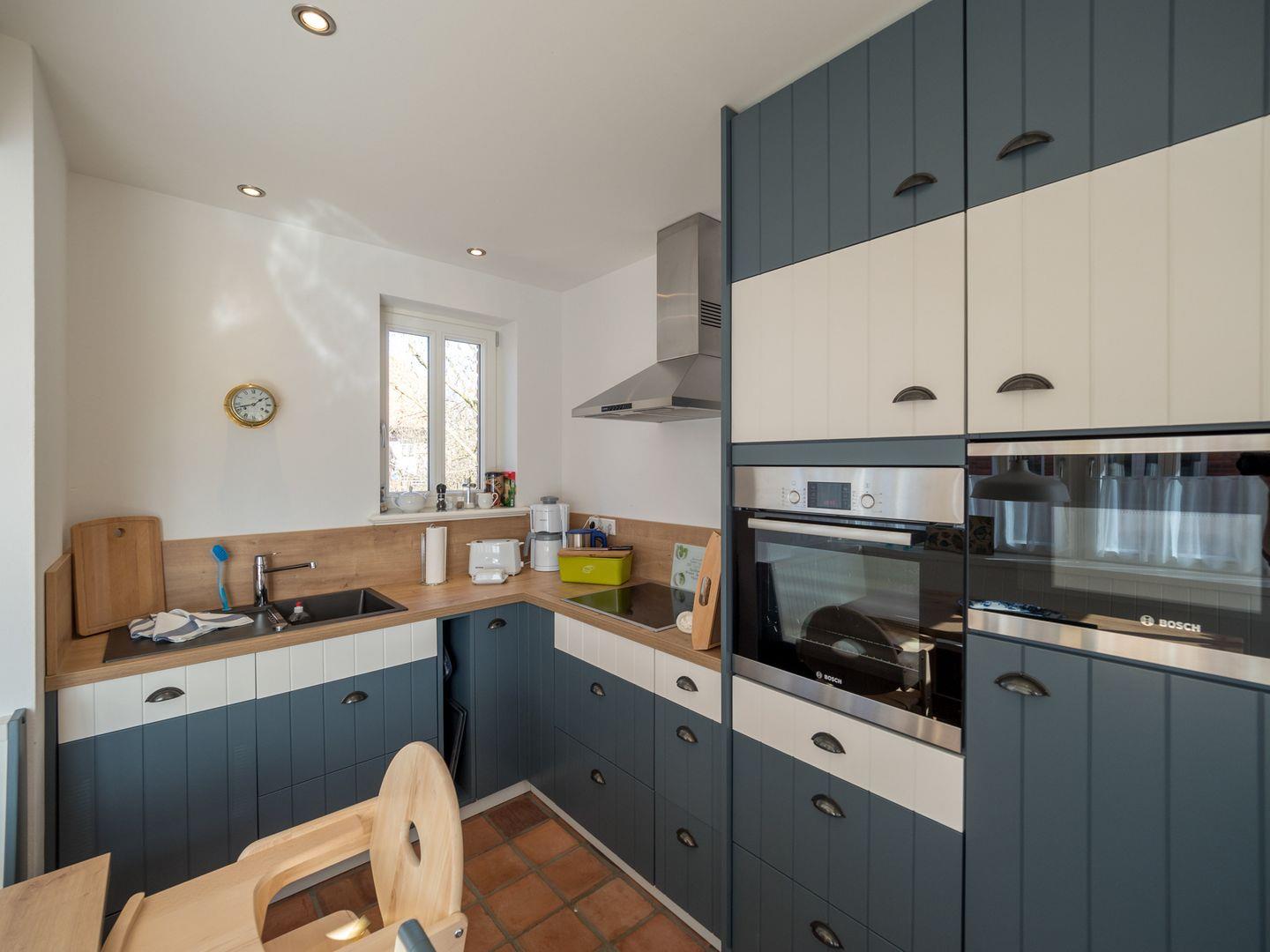 Der helle Wohn-, Ess- und Küchenbereich strahlt stilvolle Gemütlichkeit aus. Die hochwertige Küche mit Ceranfeld, Backofen, Mikrowelle, Spülmaschine, Kaffeemaschine und reichlich Geschirr und Besteck bietet allen Komfort. Wlan, HD-Flachbildschirm und Musikanlage stehen bereit. Der Elektrokamin mit Flammen- und Raucheffekt zaubert Atmosphäre und Gemütlichkeit eines echten Feuers. Neben der Haustür befindet sich eine Toilette mit Duschbad.