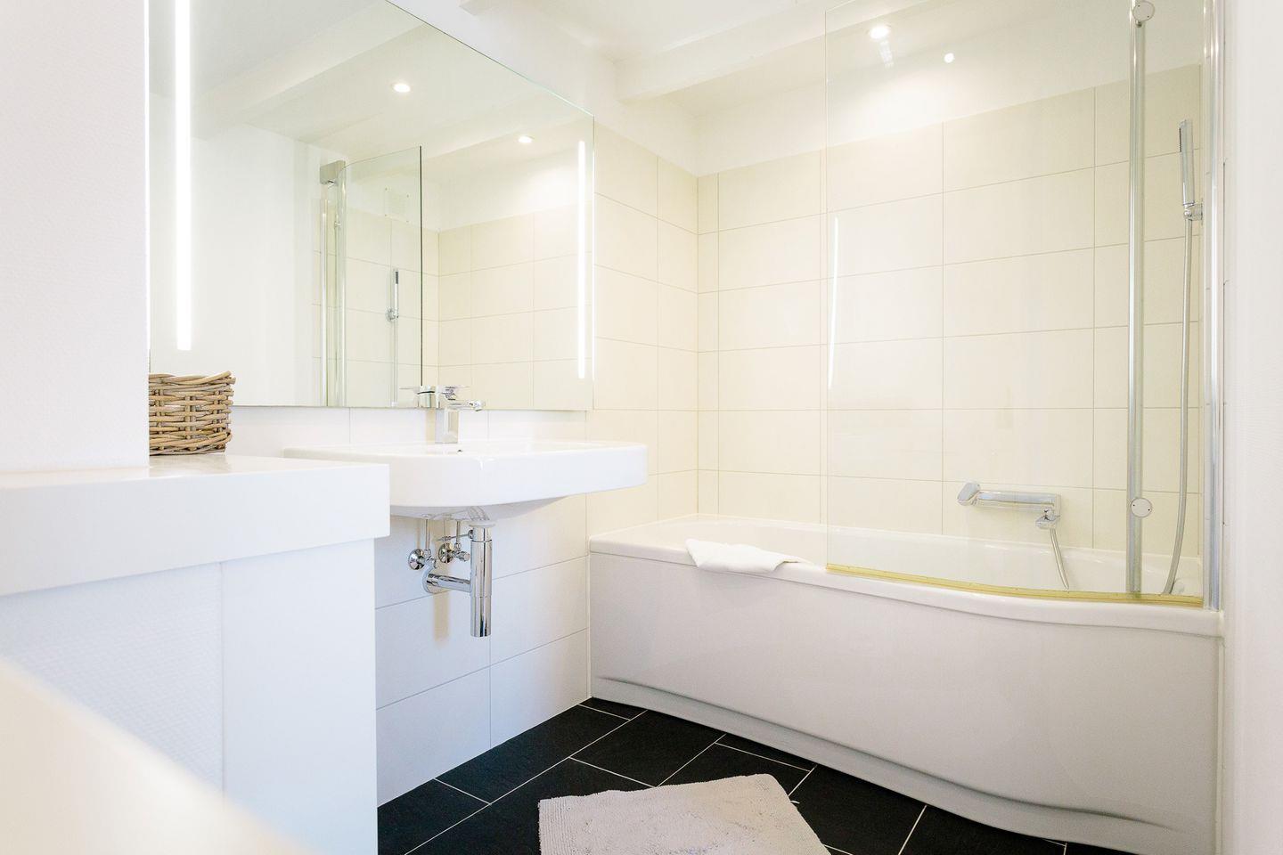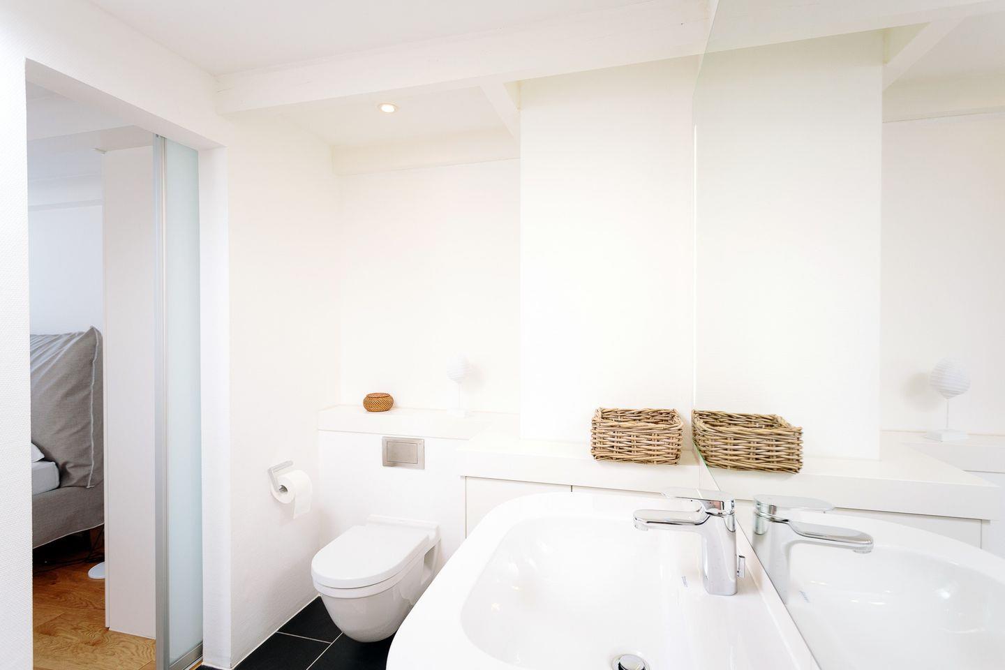 Das Haus verfügt über zwei hochwertige moderne Bäder. Ein Bad mit Toilette und Dusche befindet sich im Erdgeschoss. Im Obergeschoss befindet sich das zweite Bad mit großer Badewanne und Toilette.