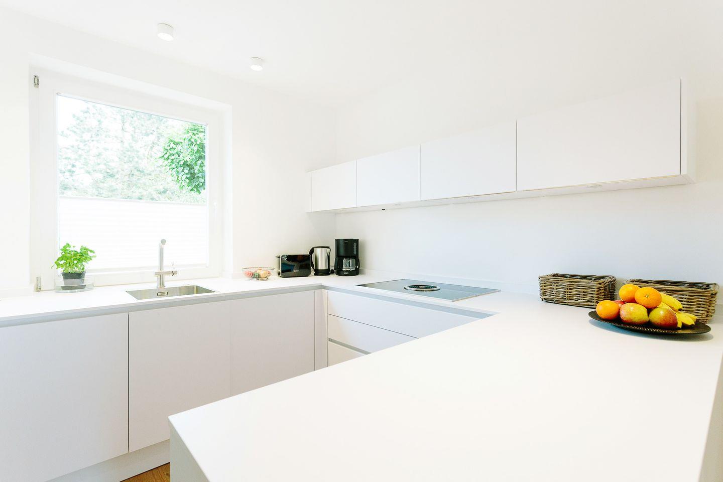 Das geräumige Wohnzimmer mit hochwertigen Möbeln nimmt die sanfte skandinavische Wohlfühlatmosphäre auf, so dass auch an regnerischen Tagen kein Gefühl von Enge aufkommt.