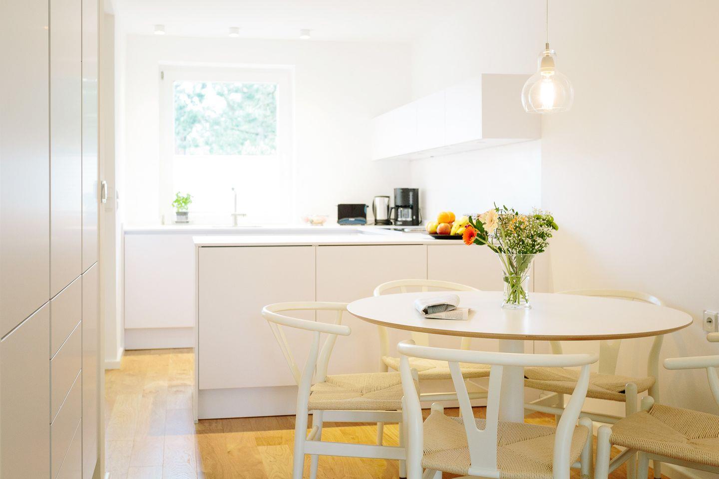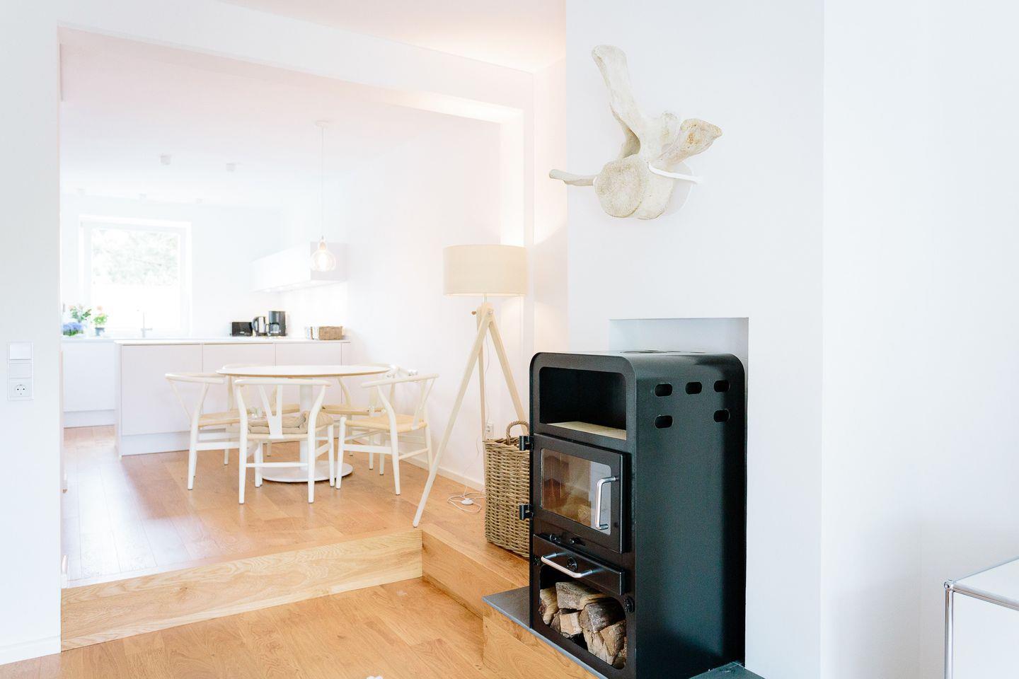 Im Erdgeschoss wartet ein großzügig geschnittener, sonniger Wohn-Essbereich auf Sie. Der Essbereich ist mit bequemen skandinavischen Stühlen ausgestattet und sorgt für entspannte Morgenstunden im Kreise der Familie und Freunde.