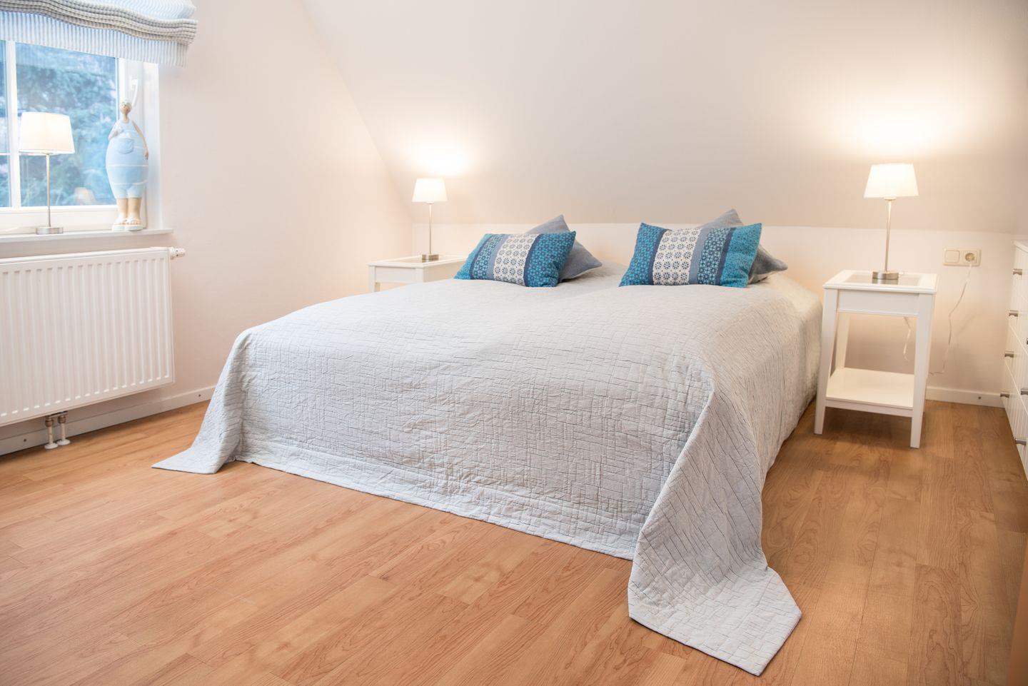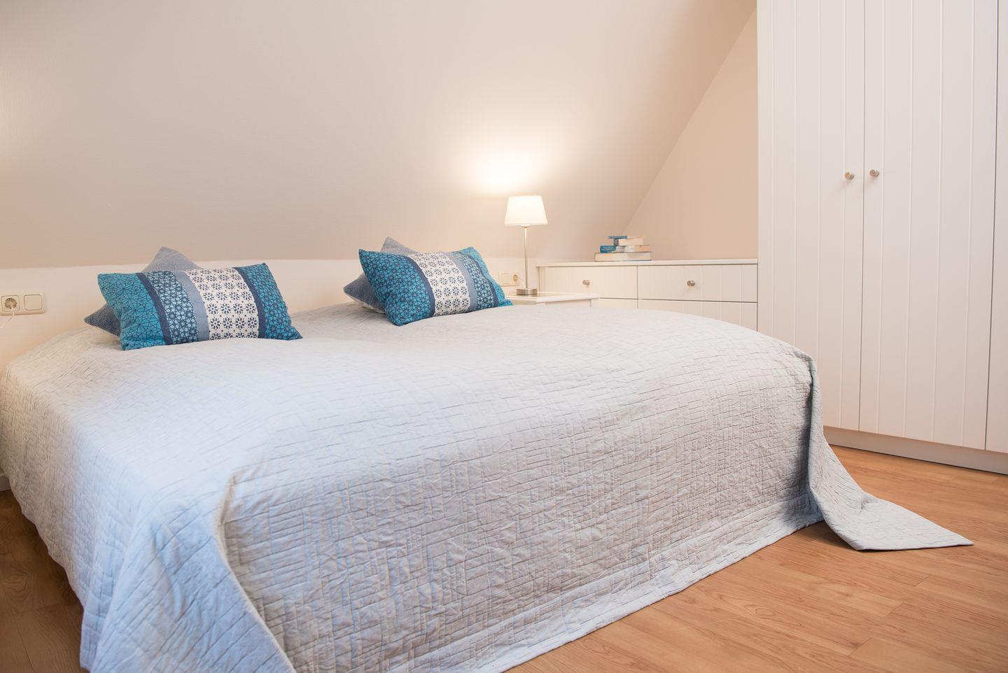 Das gemütliche Dachgeschoss birgt weitere vier Schlafzimmer, darunter zweimal Doppelbetten, einmal zwei Einzelbetten und ein Einzelzimmer. Hier können Sie sich zurückziehen und die wohlverdiente Ruhe genießen.