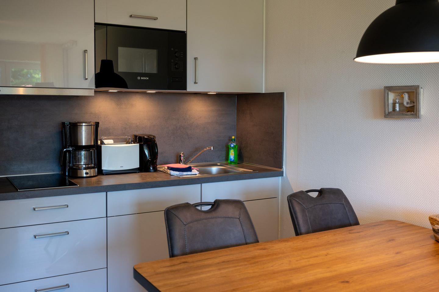 Eine Sauna im Haus heizt ein, wenn das Wetter sich mal friesisch-frisch zeigt. Gerade Familien freuen sich über Waschmaschine und Trockner im Haus.