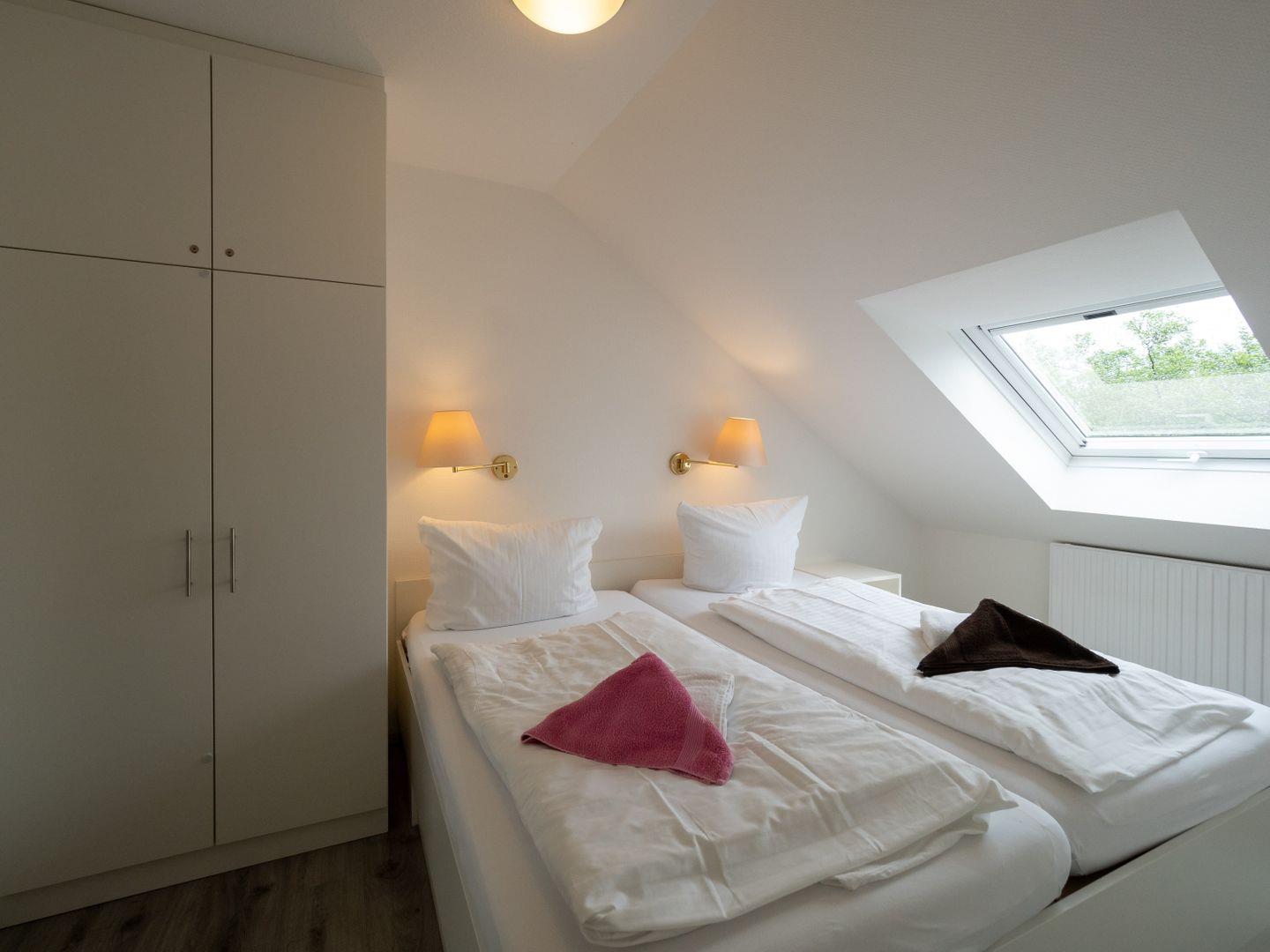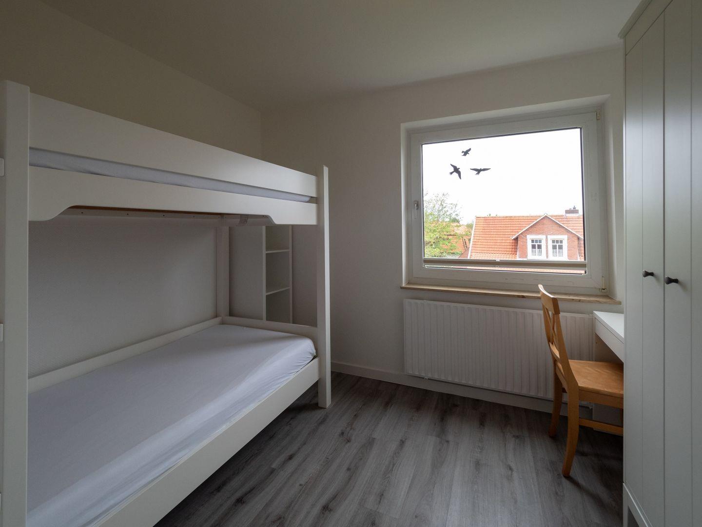 Das Appartementhaus liegt in zentraler Lage auf der Insel. Hier finden Sie alles, was Sie für einen erholsamen Urlaub brauchen. Die Wohnung selbst hat zwei Schlafzimmer, das Kinderschlafzimmer ist mit einem Etagenbett und einem kleinen Kinderschreibtisch ausgestattet. Das Sofa im Wohnzimmer ist auch als Schlafcouch nutzbar.
