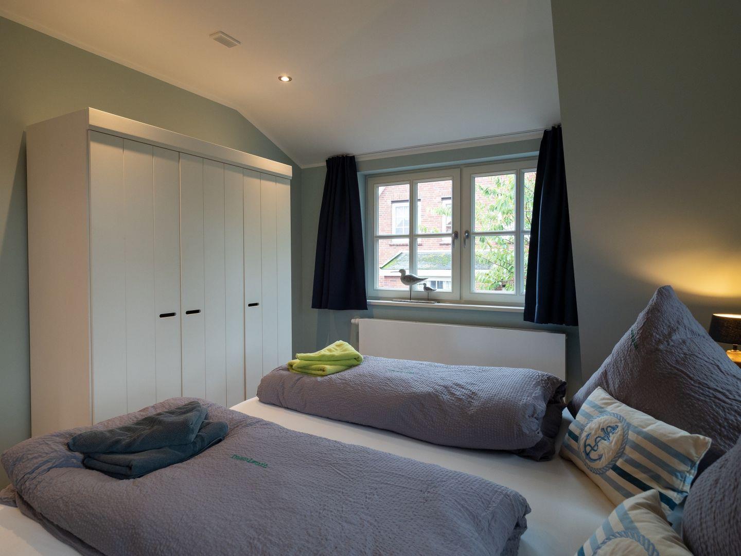 Die Ferienwohnung verfügt über ein Schlafzimmer und bietet Platz für 2 Personen sowie ein Kleinkind. Ein kleiner Balkon lädt dazu ein, die frische Nordseeluft zu genießen und den Blick in den Sternenhimmel zu schweifen.