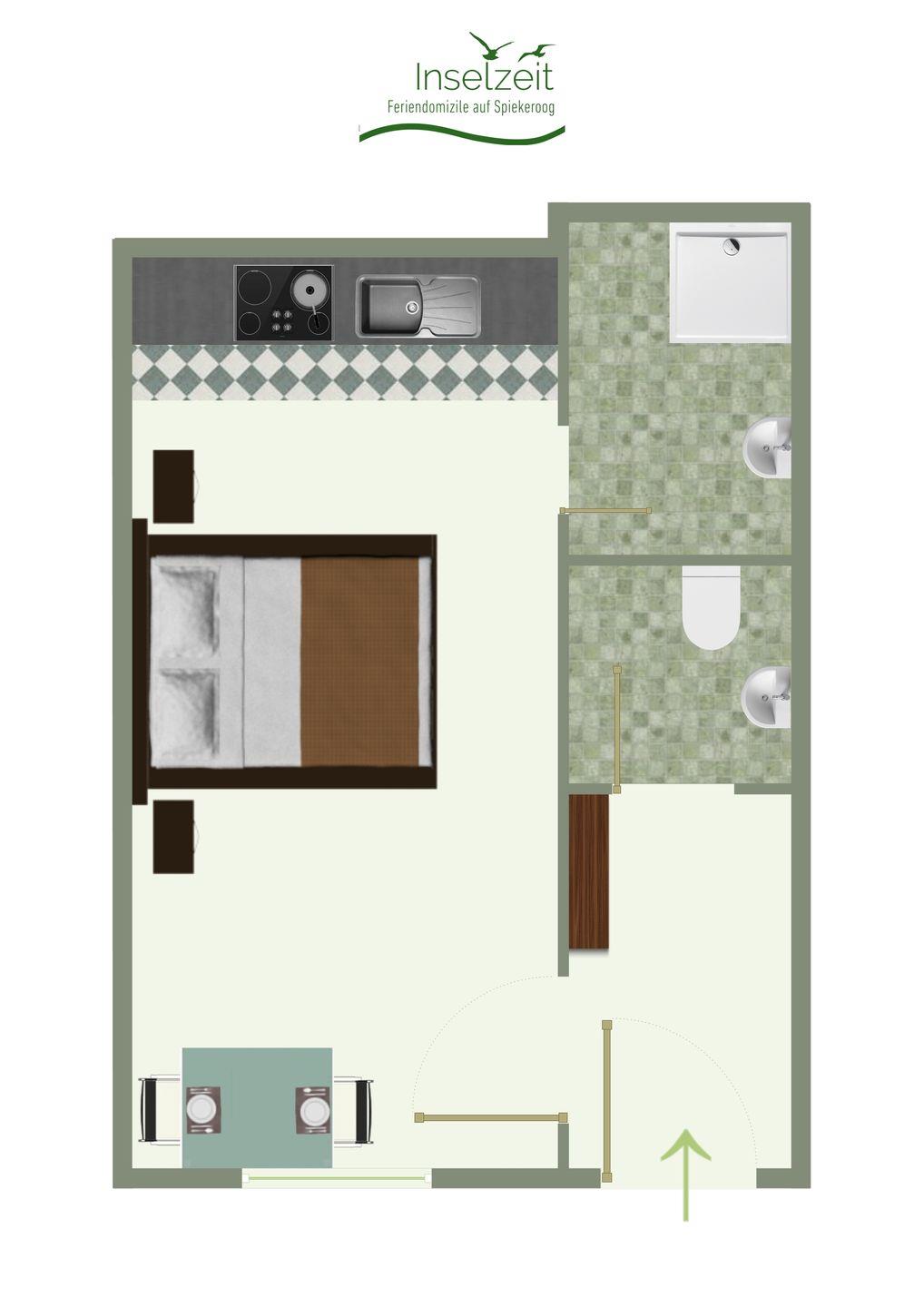 Ferienwohung im Erdgeschoss mit Südterrasse, 2 Schlafzimmer, 1 Bad