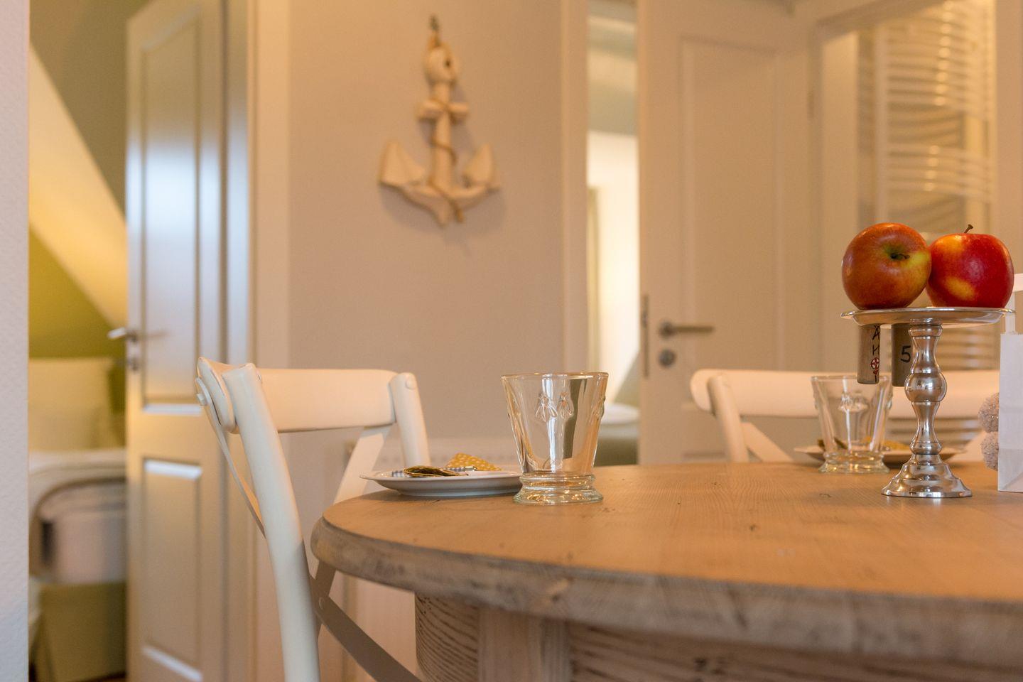 Die Wohnung hat eine Größe von 38 qm verfügt über einen nach Süden ausgerichteten Balkon. Die Dachschrägen machen diese Wohnungen besonders gemütlich. Die Wohnung verfügt über eine moderne und gut ausgestattete Einbauküche, einen Fernseher, Fön, Staubsauger und WLAN. Eine Waschmaschine und einen Trockner finden Sie im Keller des Hauses. Unser STRANDHAUS eignet sich herrlich für den Urlaub mit der Großfamilie. Eltern und Kinder wohnen Tür an Tür mit Tante, Onkel, Cousin, Cousine oder den Großeltern, spielen gemeinsam im Garten oder am Strand.