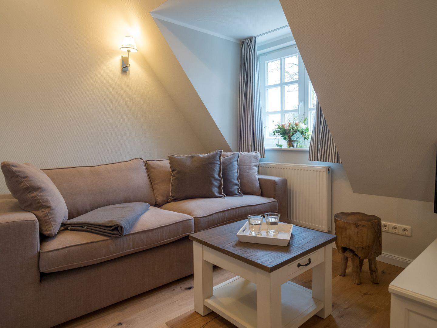 Die Wohnung hat eine Größe von 38 qm verfügt über einen nach Süden ausgerichteten Balkon. Die Dachschrägen machen diese Wohnungen besonders gemütlich. Die Wohnung verfügt über eine moderne und gut ausgestattete Einbauküche, einen Fernseher, Fön, Staubsauger und WLAN. Eine Waschmaschine und einen Trockner finden Sie im Keller des Hauses. Unser STRANDHAUS eignet sich herrlich für den Urlaub mit der Großfamilie. Eltern und Kinder wohnen Tür an Tür mit Tante, Onkel, Cousin, Cousine oder den Großeltern, spielen gemeinsam im Garten oder am Strand.