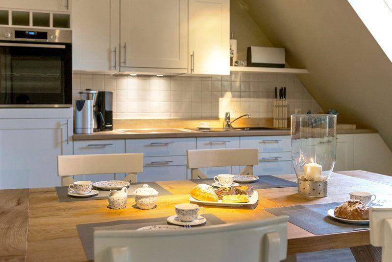 Unsere hell und freundlich eingerichtete "Ferienwohnung 6" im Obergeschoss für max. 2 Personen hat eine Wohnfläche von ca. 78 m² und erstreckt sich über zwei Etagen. Sie verfügt über 1 Schlafzimmer, 1 Wohnzimmer mit Küche, 1 Bad und 1 Balkon. Auf Wunsch können wir Ihnen einen Kinderhochstuhl sowie ein Kinderreisebett zur Verfügung stellen.