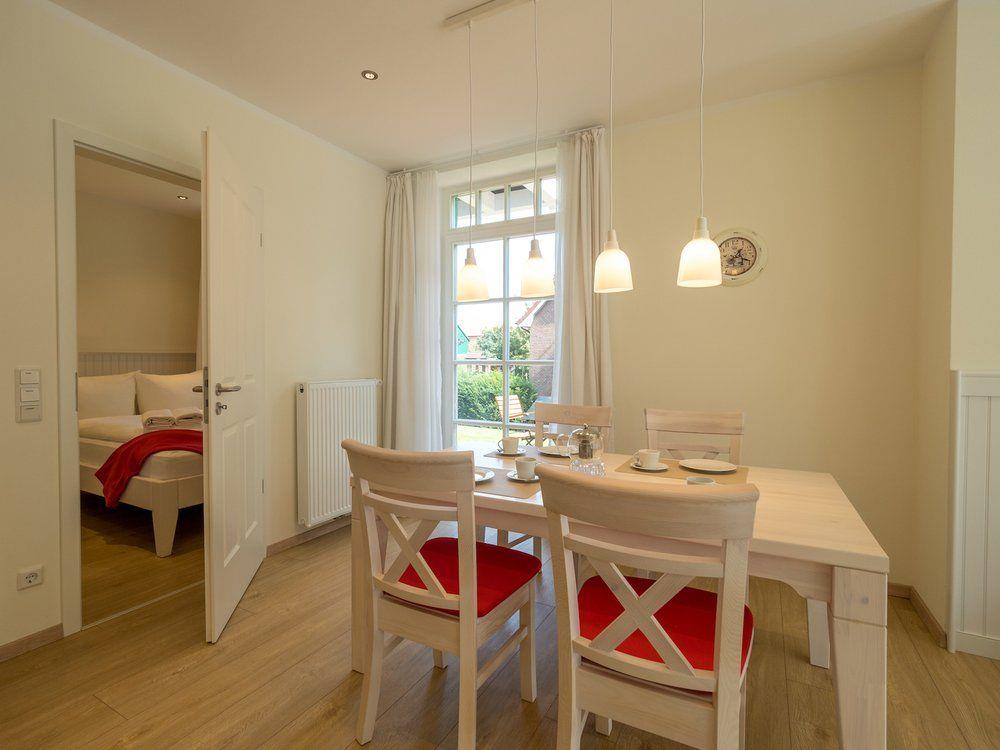Wunderschöne Erdgeschoss-Wohnung Lasse im Haus Bullerbü, für bis zu 4 Personen, ca. 64 m² mit inseltypischer Veranda, 2 Schlafzimmer, Wohn-/Essbereich, eigener Garten mit möblierter Terrasse sowie ein Badezimmer mit Badewanne und Dusche. Die Küche ist ausgestattet mit Herd, Backofen, Mikrowelle, Kühlschrank und Spülmaschine.