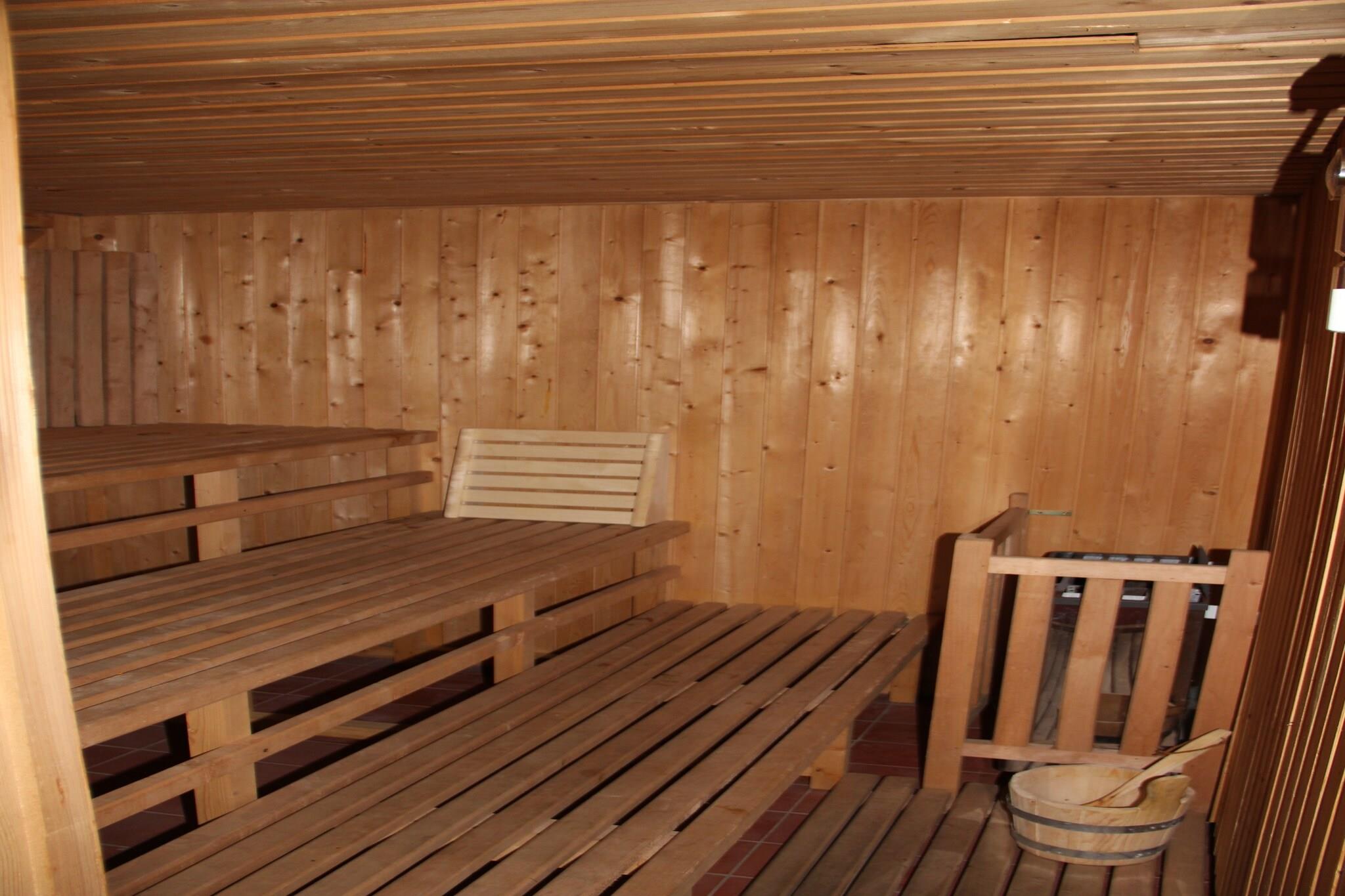 Stueetage: (Indgang , gang, Køkken(elkedel, brødrister, komfur(glaskeramisk, elektrisk), kaffemaskine(kaffetragt), ovn, opvaskemaskine , køleskab(+ fryser)), Stue/soveværelse(dobbeltseng, Fjernsyn(fladskærm, parabol), pejs, DVD-afspiller, CD-afspiller), Stue/soveværelse(2x enkeltseng, Fjernsyn(fladskærm, parabol)), badeværelse(bruser, toilet, vaskemaskine)) opholdsrum(deles med andre gæster)(bordtennisbord), sauna(betalt, 4 personer), vaskemaskine, varme(central), terrasse(privat, 50 m2), have(indhegnet, 300 m2), havemøbler, grill(trækul), 2x parkering, Parasol, hundekurv, hyggespil, insektnet, Gyngestativ