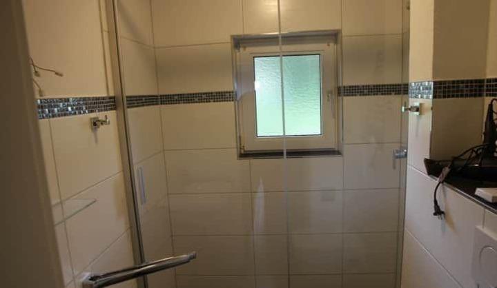 Im Bad, ausgestattet mit WC, Waschbecken und Dusche, stehen unseren Gästen ein Haartrockner, Handwaschseife, Toilettenpapier und Kosmetiktücher zur Verfügung.