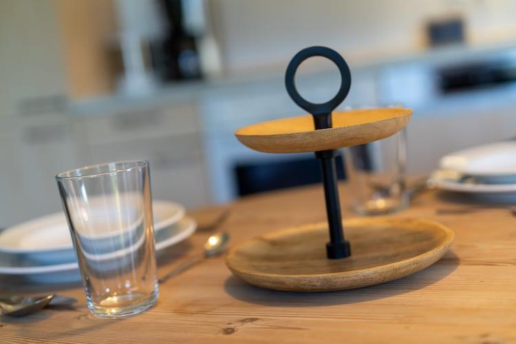 Stueetage: (åbent køkken(kogeplade(Komfur med fire kogeplader, glaskeramisk), elkedel, brødrister, emhætte, kaffemaskine, ovn, mikrobølgeovn, opvaskemaskine , køle-fryseskab), stue / spisestue(Fjernsyn(fladskærm, parabol), spisebord, sofahjørne, radio, CD-afspiller), soveværelse(dobbeltseng(180 x 200 cm)), badeværelse(bruser, håndvask, toilet, føntørrer)) Havemøbler, varme, terrasse, parkering, Vaskeripakke inkl.