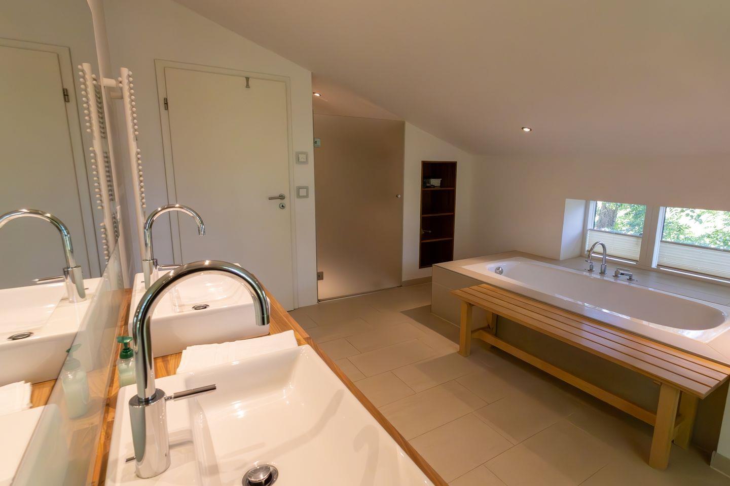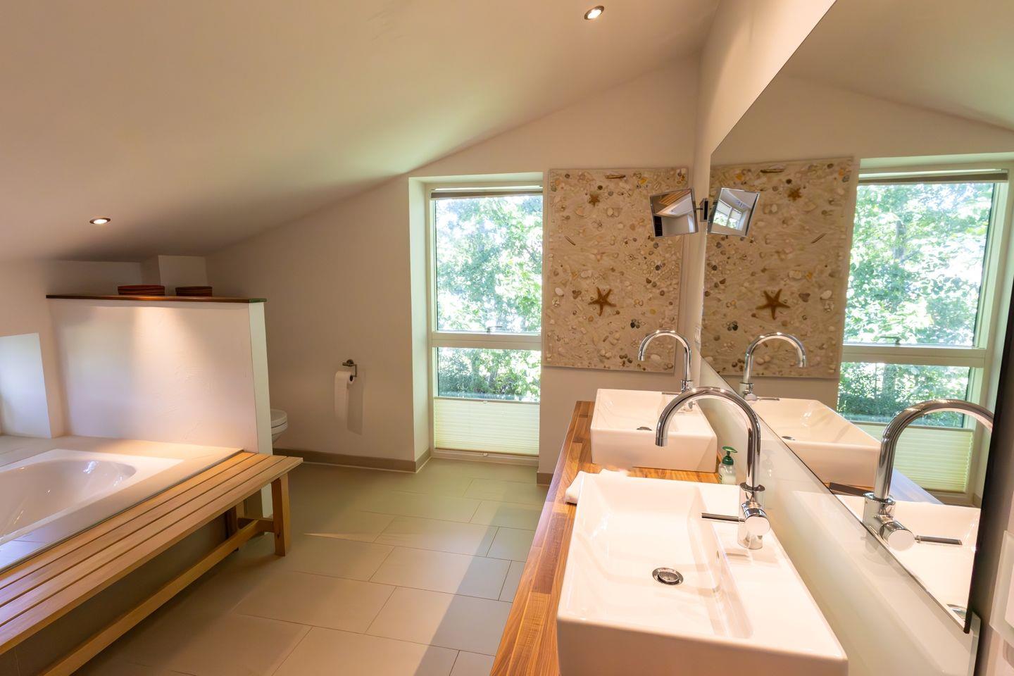 Obergeschoss: 3 Schlafzimmer mit Doppelbett, ein Wannenbad / WC mit separater Dusche und Doppelwaschbecken