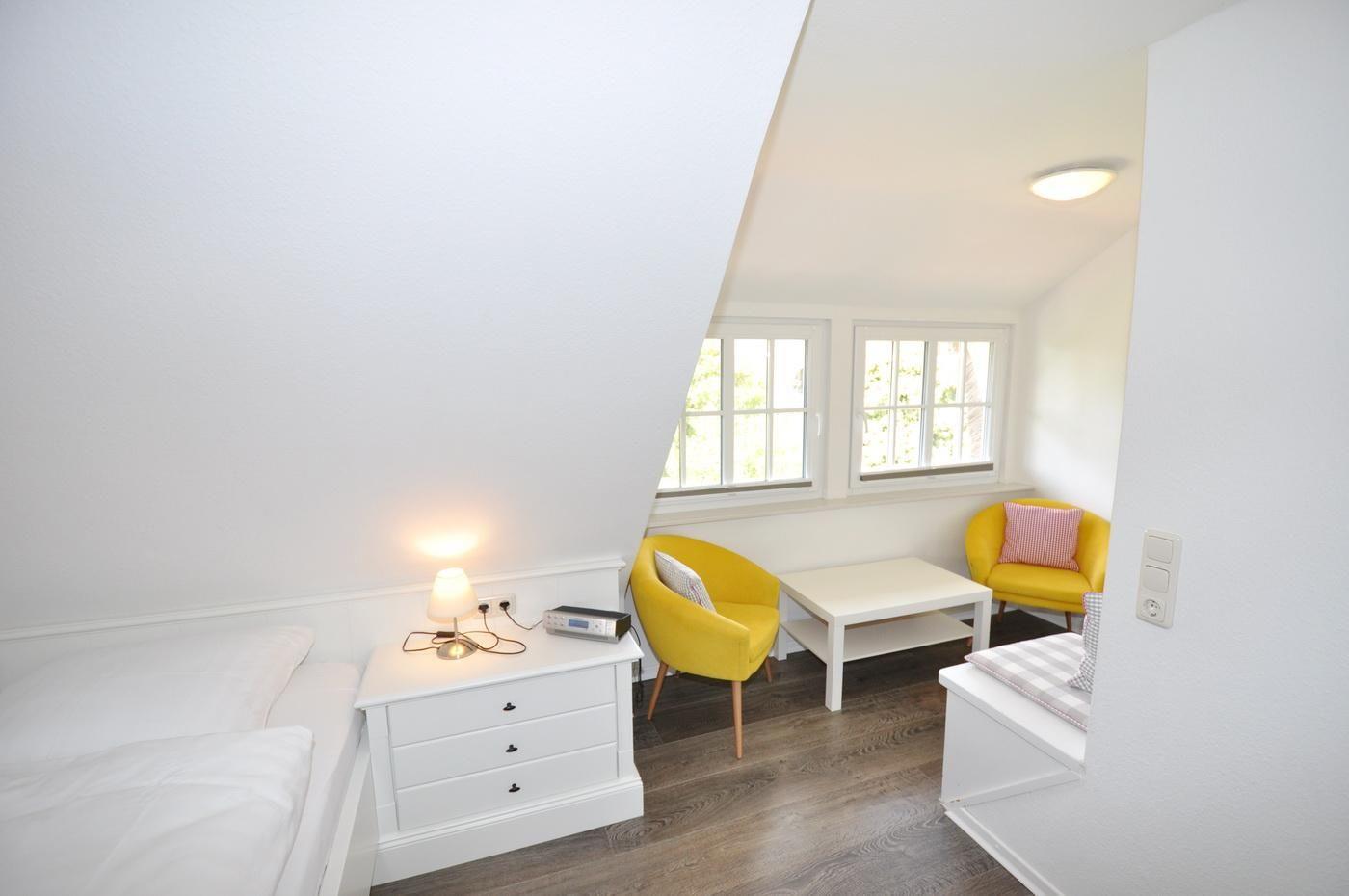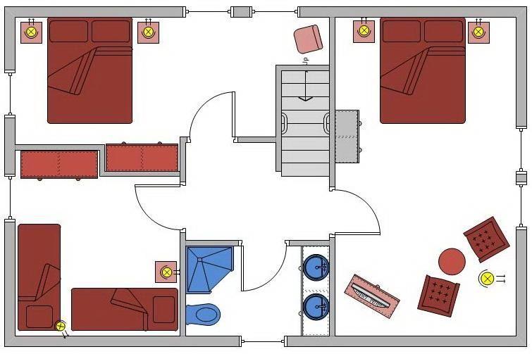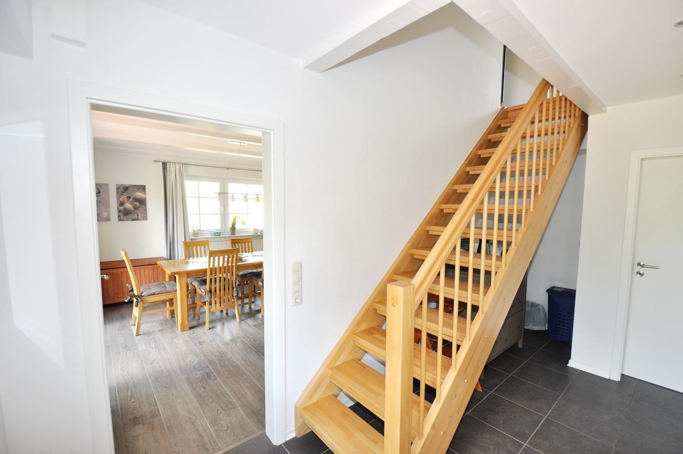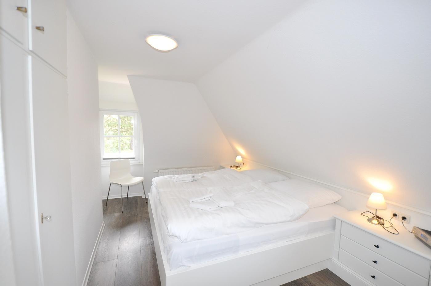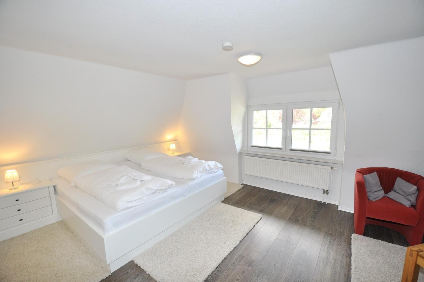 Obergeschoss: ein Schlafzimmer mit Doppelbett (180 x 200 cm) und zusätzlicher Sitzecke mit TV, ein Schlafzimmer mit Doppelbett (180 x 200 cm), ein Schlafzimmer mit 2 Einzelbetten (je 80 x 200 cm), ein Duschbad / WC mit Handtuchheizung und Tageslicht