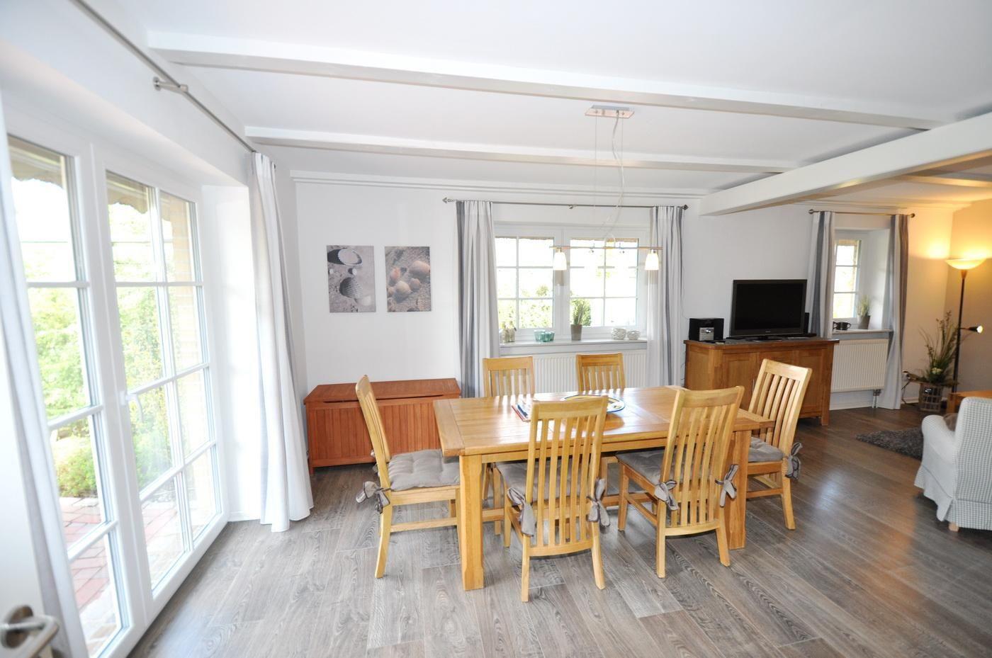 Im ruhiger und begehrter Lage mitten im "Stillen Dorf" liegt dieses gemütliche Reetdachhaus. Den Ortskern erreichen Sie in etwa 10 Minuten zu Fuß, hier finden sie verschiedene Einkaufsmöglichkeiten und Restaurants. Auch die Dünen und der Deich liegen nicht weit entfernt und laden zu ausgiebigen Spaziergängen bei gutem Wetter ein. Das Domizil selbst verfügt über ein großes Gartengrundstück, welches Ihnen direkt am Haus ebenfalls einen wunderbaren Ort der Erholung bietet.