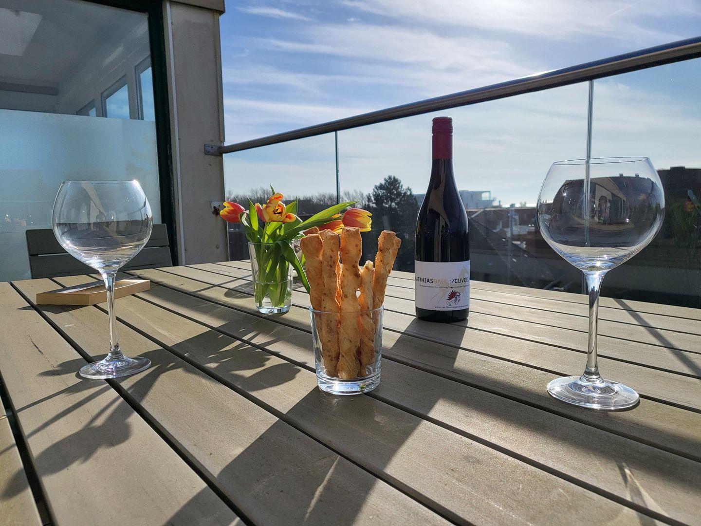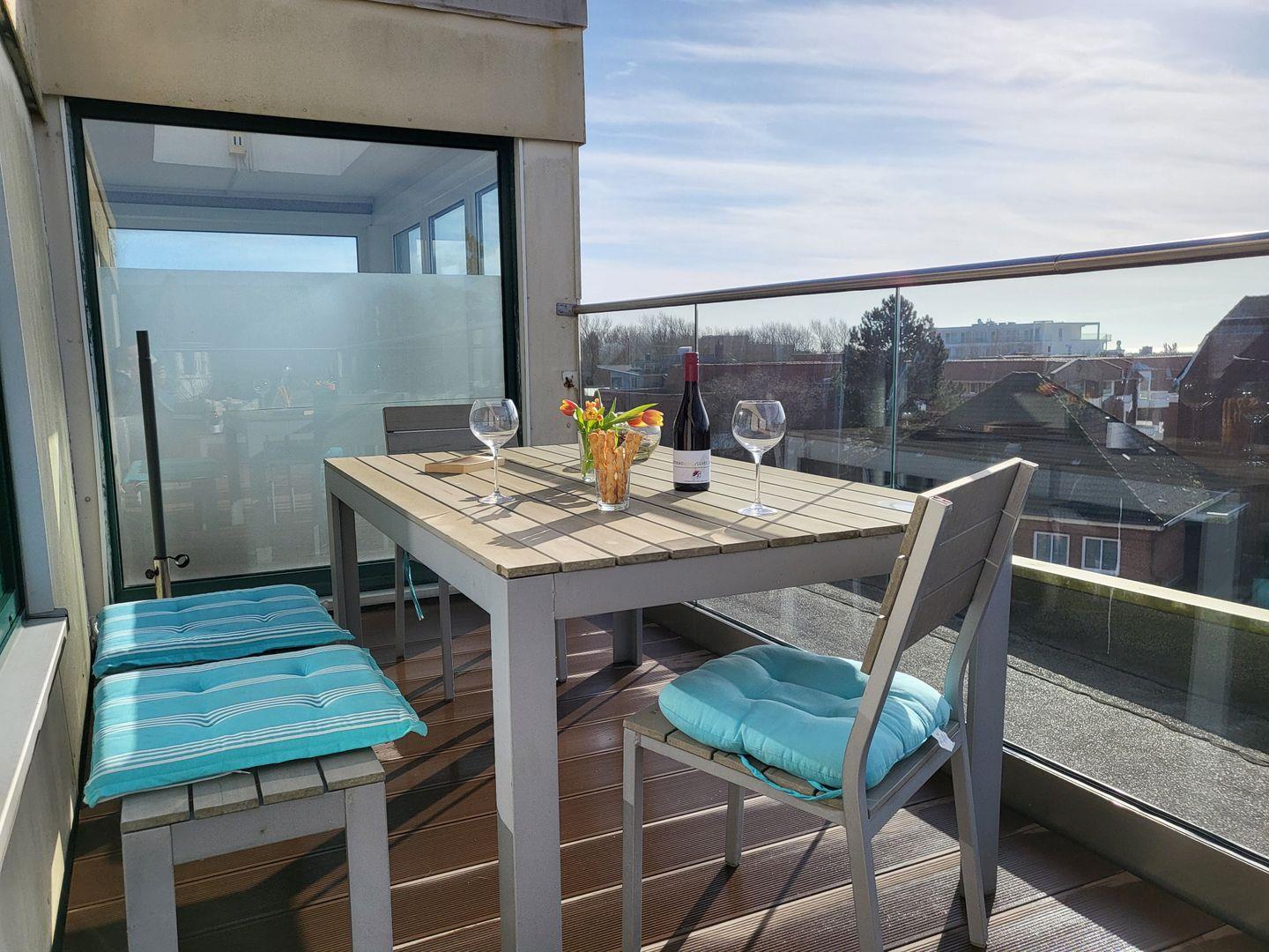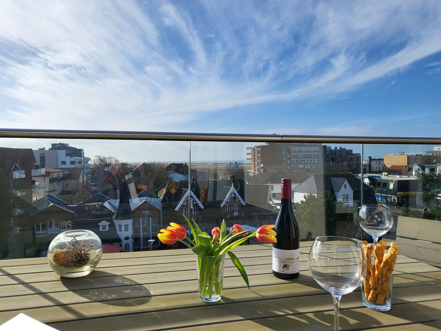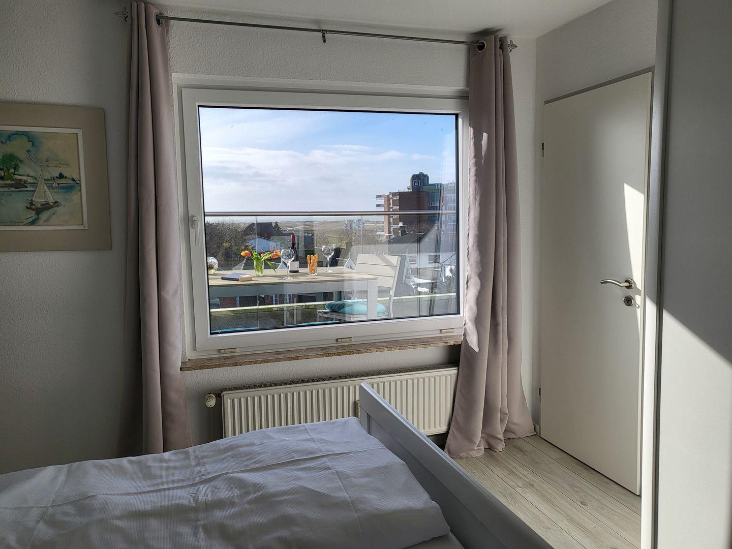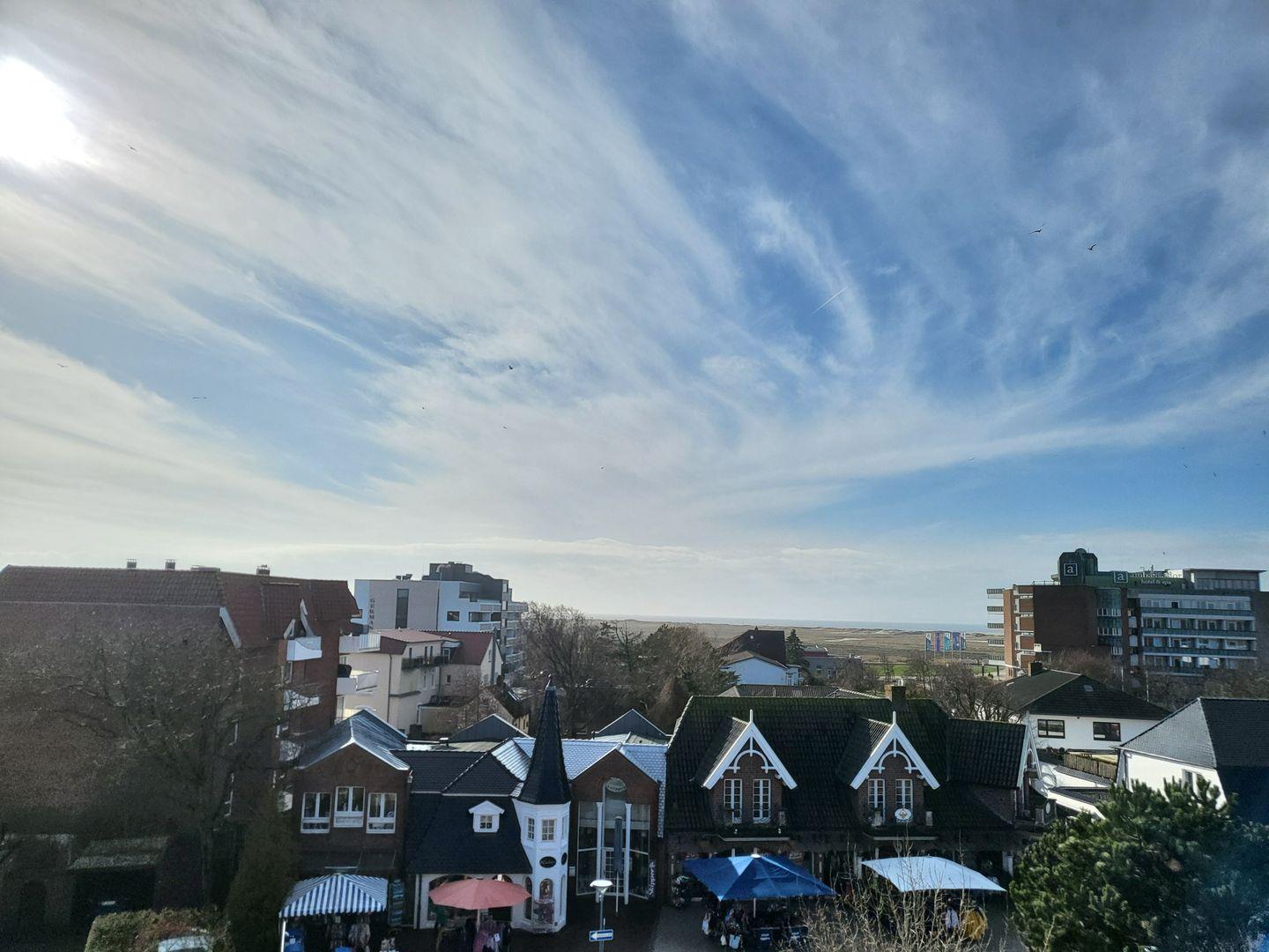 Die im Januar 2024 neu sanierte Dachterrasse lädt mit einem atemberaubenden Ausblick auf die Nordsee zum entspannen ein. Diese Wohnung kann den Fahrstuhl nutzen.