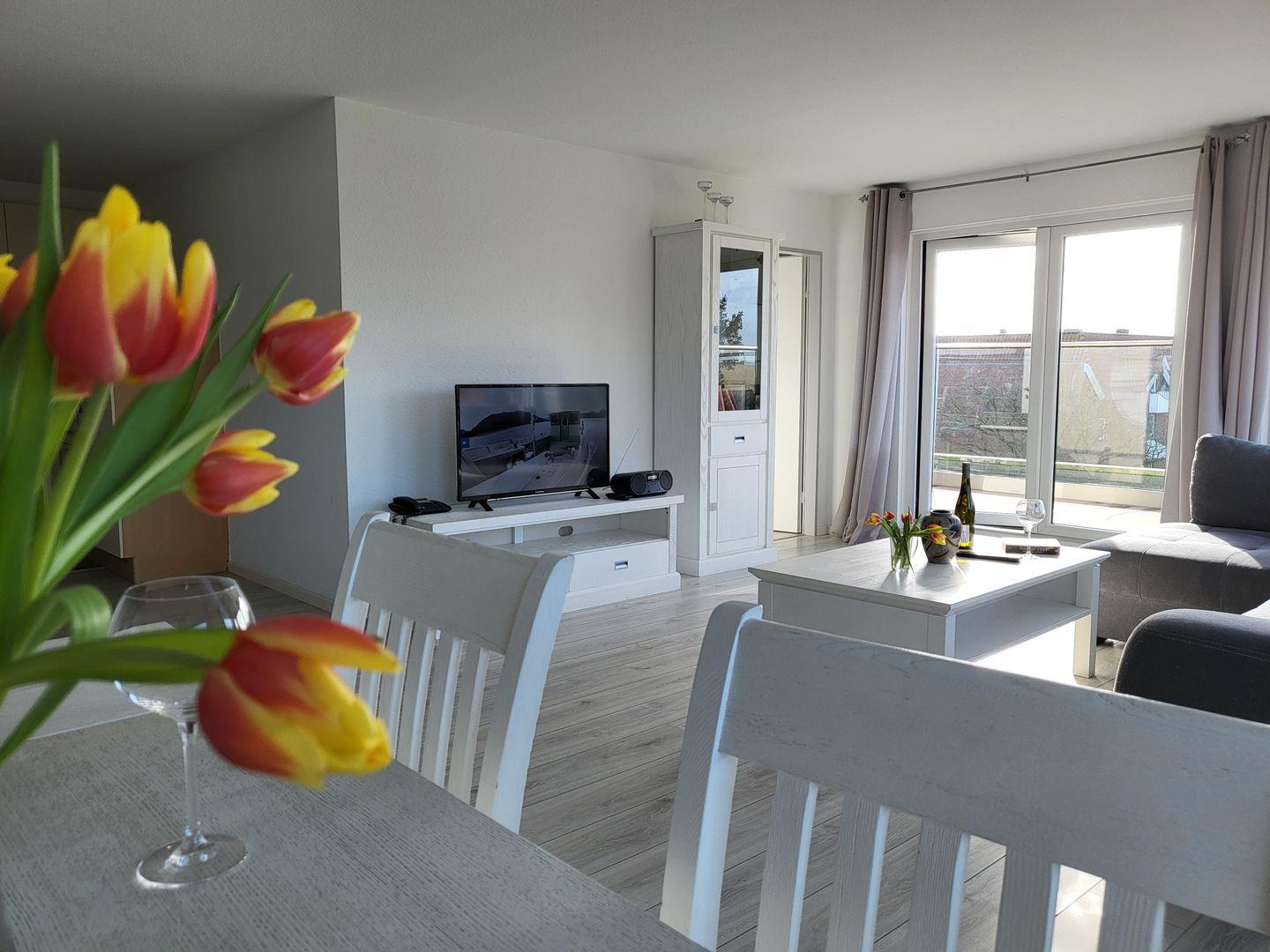 Zentral gelegene 3-Zimmer Penthousewohnung im 3. Etage für bis zu 4 Personen. Balkon mit direktem Seeblick.