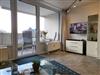 Der große Wohn- und Schlafraum ist modern und hochwertig eingerichtet. Er ist ausgestattet mit einer sehr gemütlichen Ledercouch und einem Flachbild-TV sowie einer kompakten Ess-Ecke. Das komfortable, platzsparende Schrankbett fügt sich perfekt ins Raumbild ein. Durch den Durchgang zu zwei möblierten Balkonen, einer davon mit Blick zur Seeseite und die Panoramafenster wirkt der Raum wunderbar hell. Kostenfreies W-LAN steht zur Verfügung.