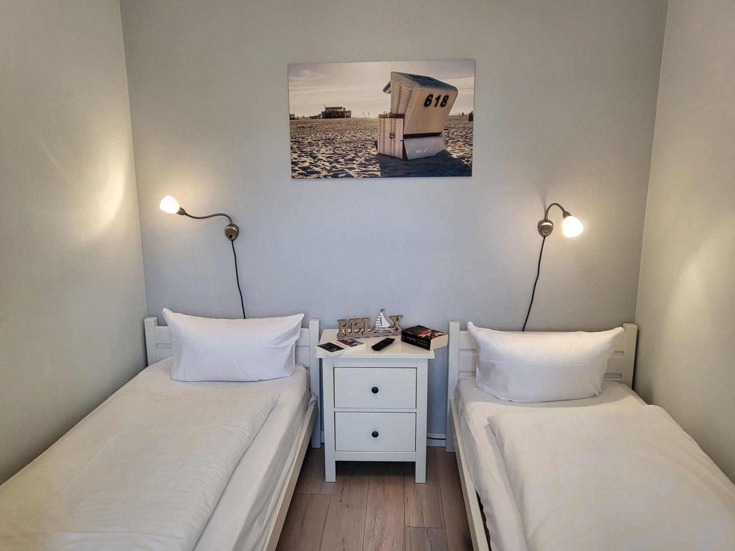 Schlafzimmer mit Einzelbetten, Duschbad mit WC, W-LAN, Nichtraucher, 1 Hund auf Anfrage.