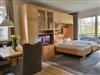Der große kombinierte Wohn- und Schlafraum ist ausgestattet mit einem komfortablen Schrankbett. Zur Ausstattung gehören hier mehrere komfortable Sitzgelegenheiten mit bestem Blick in Richtung Flachbild-TV. Kostenfreies W-LAN ist vorhanden.