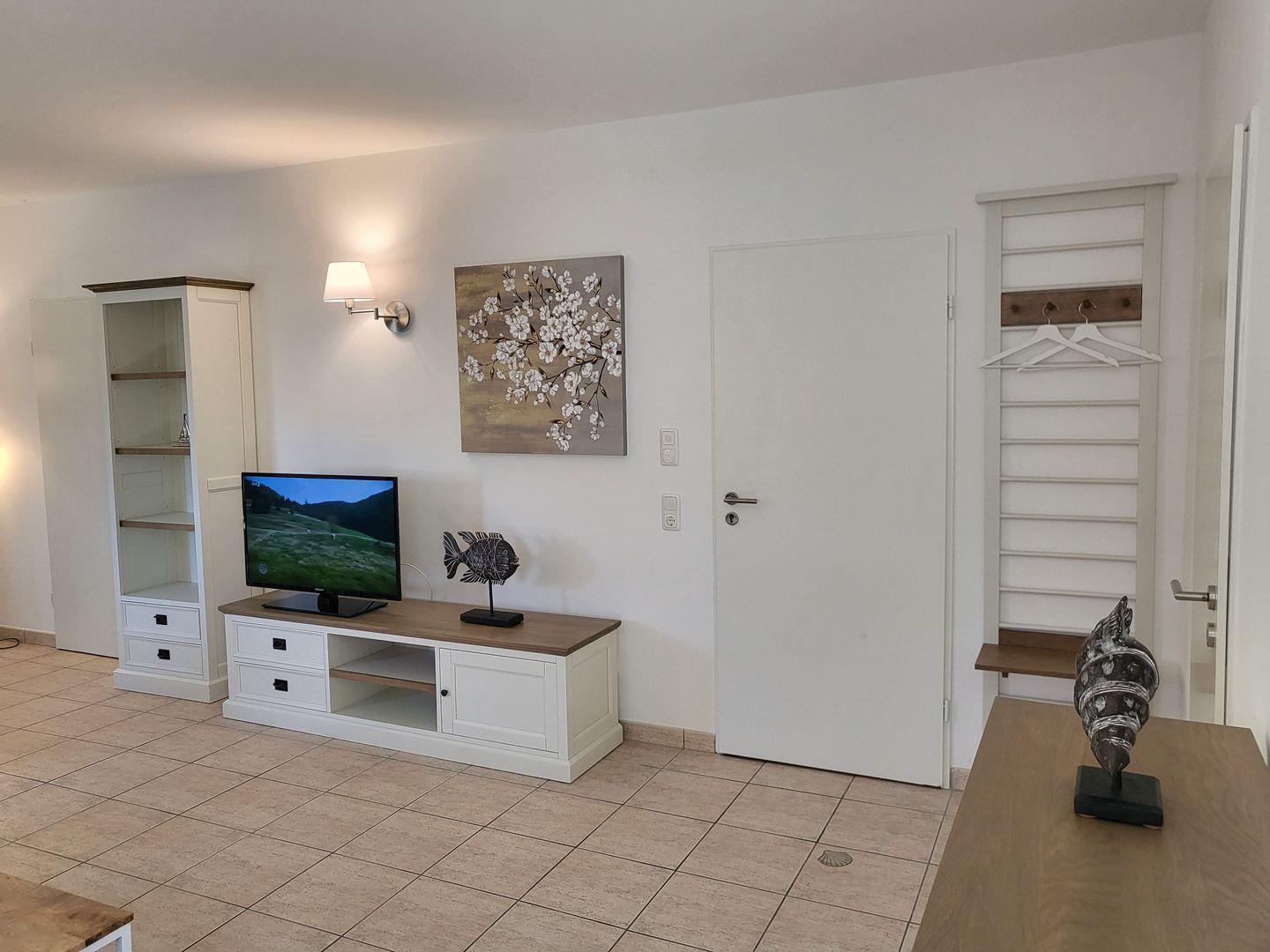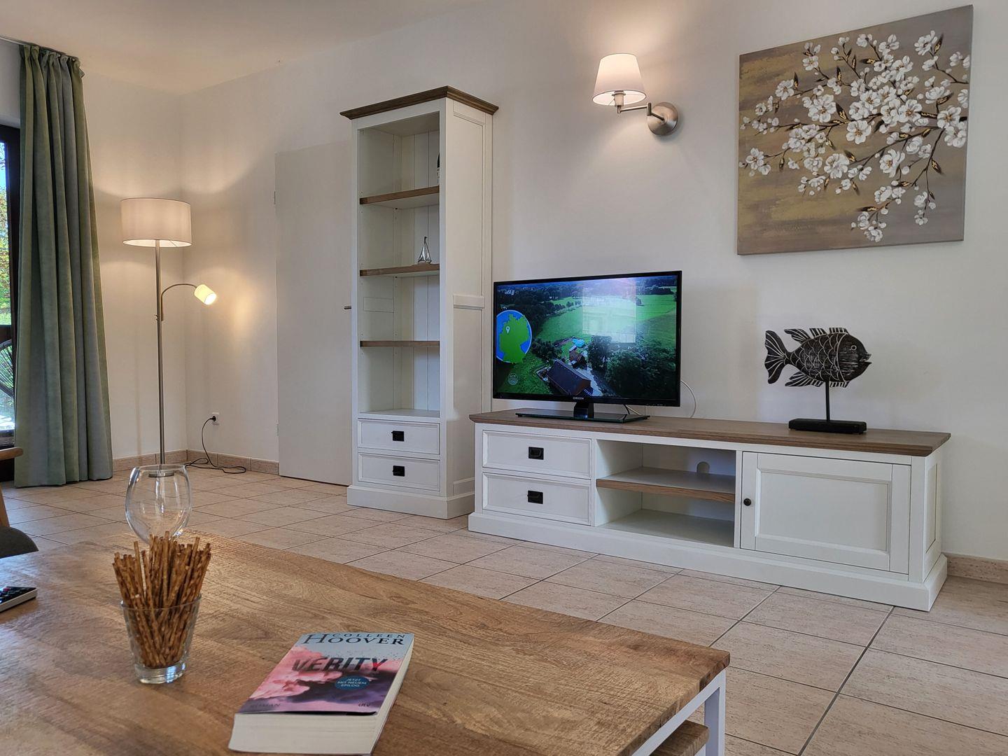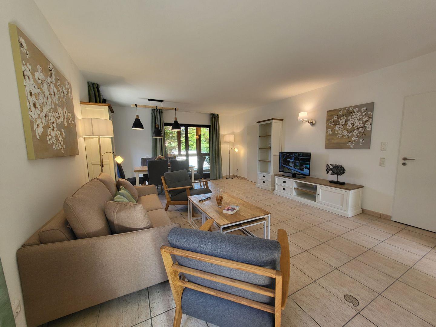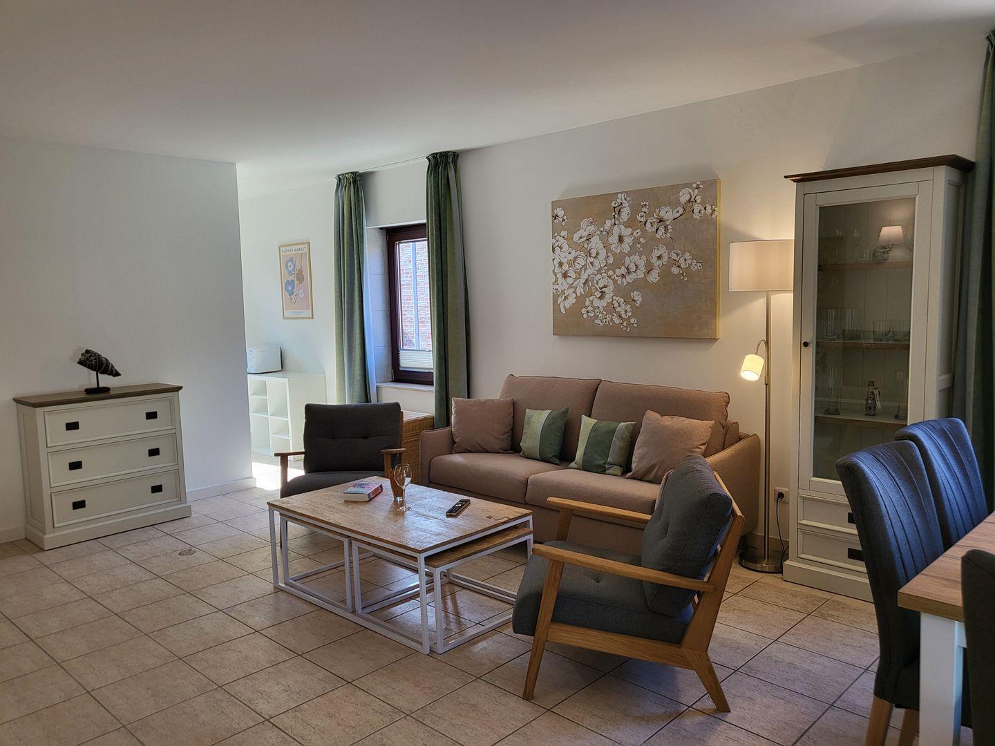 Das Wohnzimmer beinhaltet einen gemütlichen Wohnbereich mit einem 2er Sofa und zwei Sesseln. Radio und Flachbild-TV sorgen für die Unterhaltung im Urlaub.