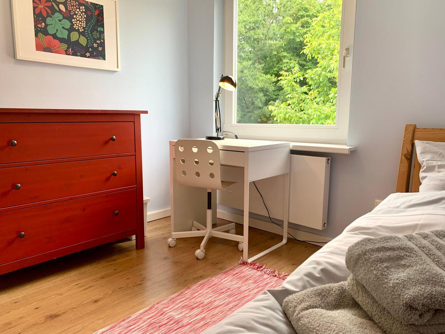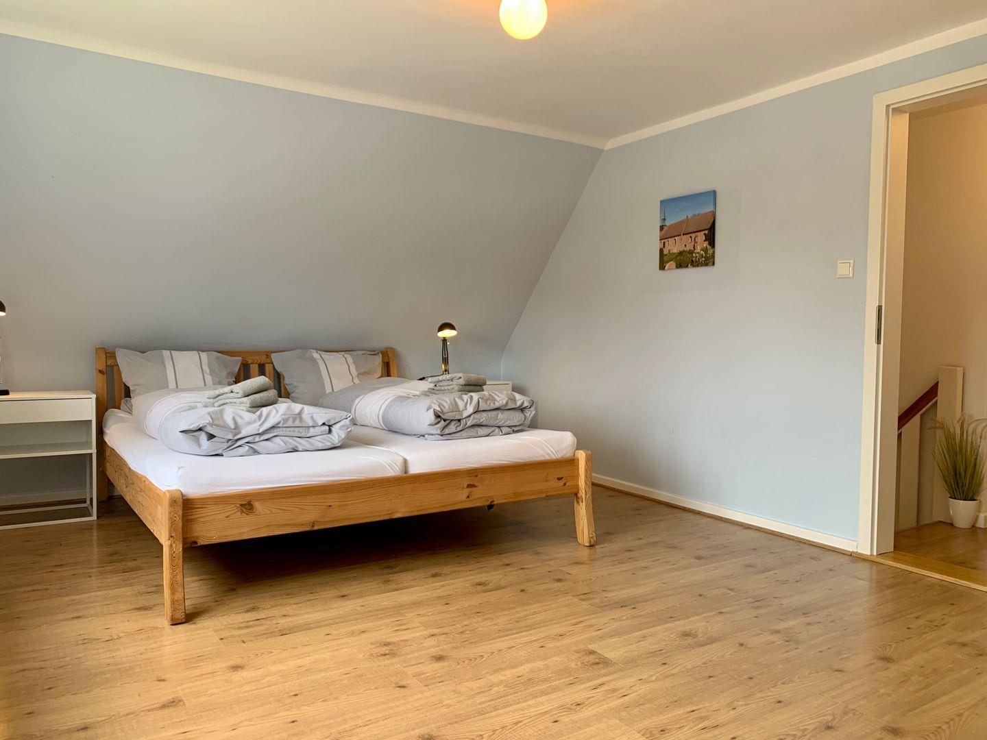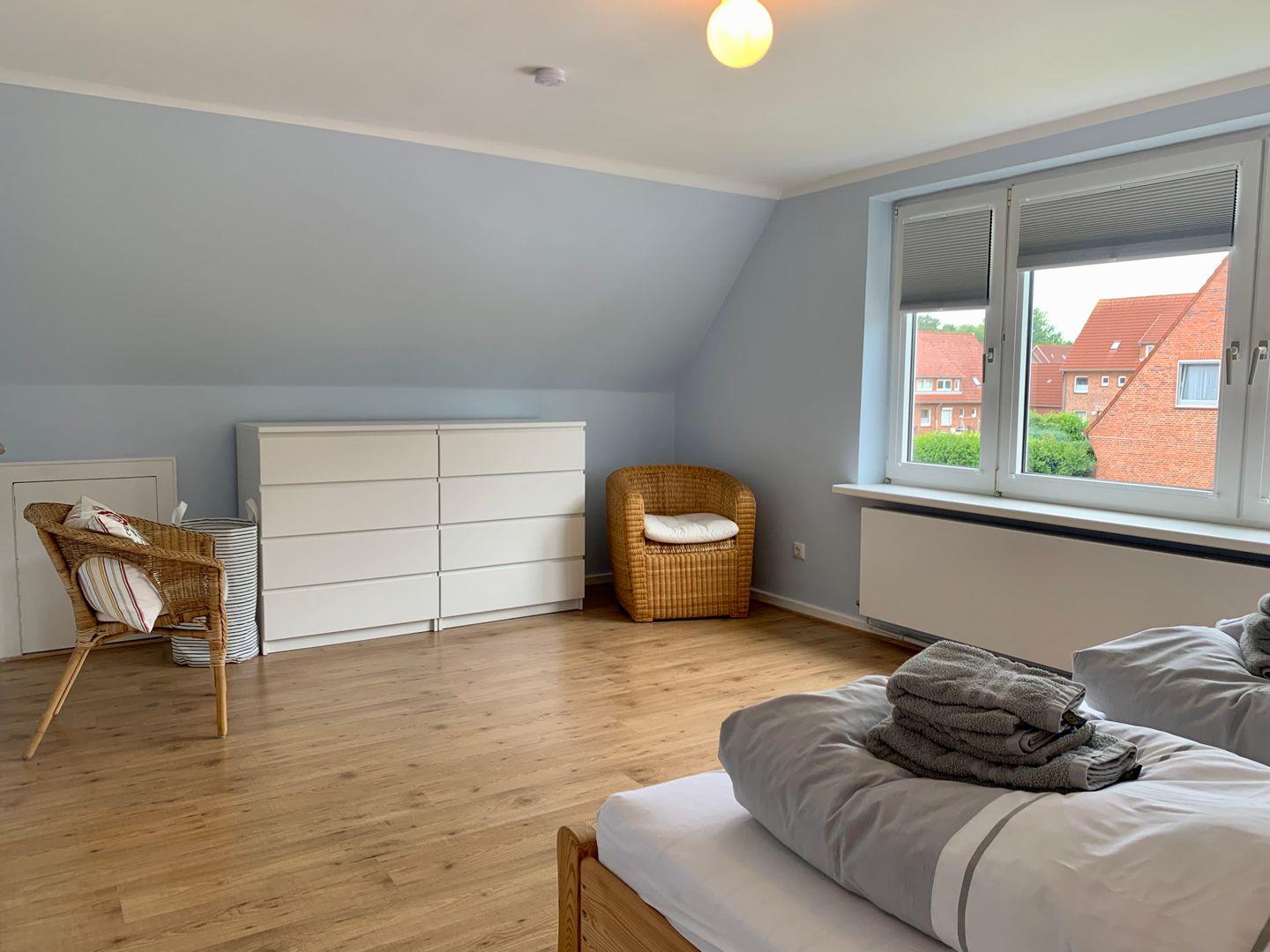 Die weiteren Schlafzimmer sind mit je einem 90x200 Einzelbett, einer Kommode und einem Schreibtisch ausgestattet. Ein separates WC gehört ebenfalls zum Obergeschoss.