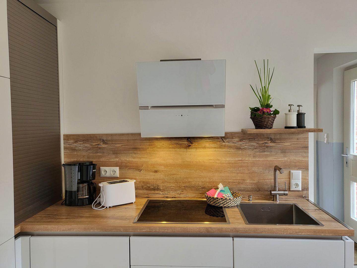 Freistehendes Ferienhaus mit Garten für bis zu 4 Personen. Esszimmer offen zum Wohnraum, moderne Küche, ein