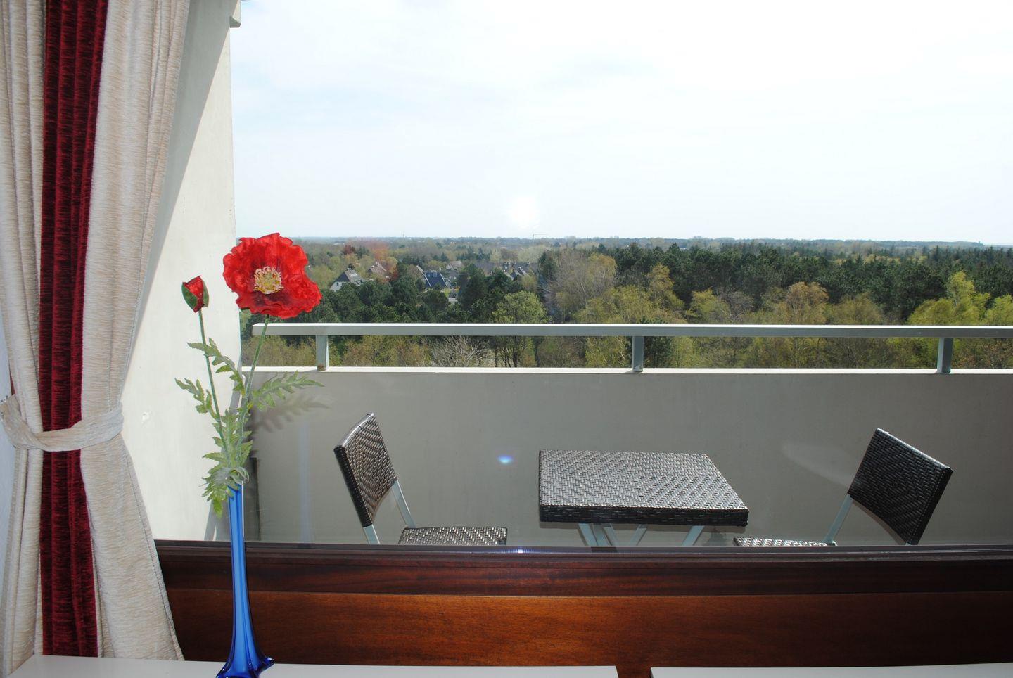 Moderne 3-Zimmer Ferienwohnung in 7. Etage mit Balkon und direktem Seeblick.