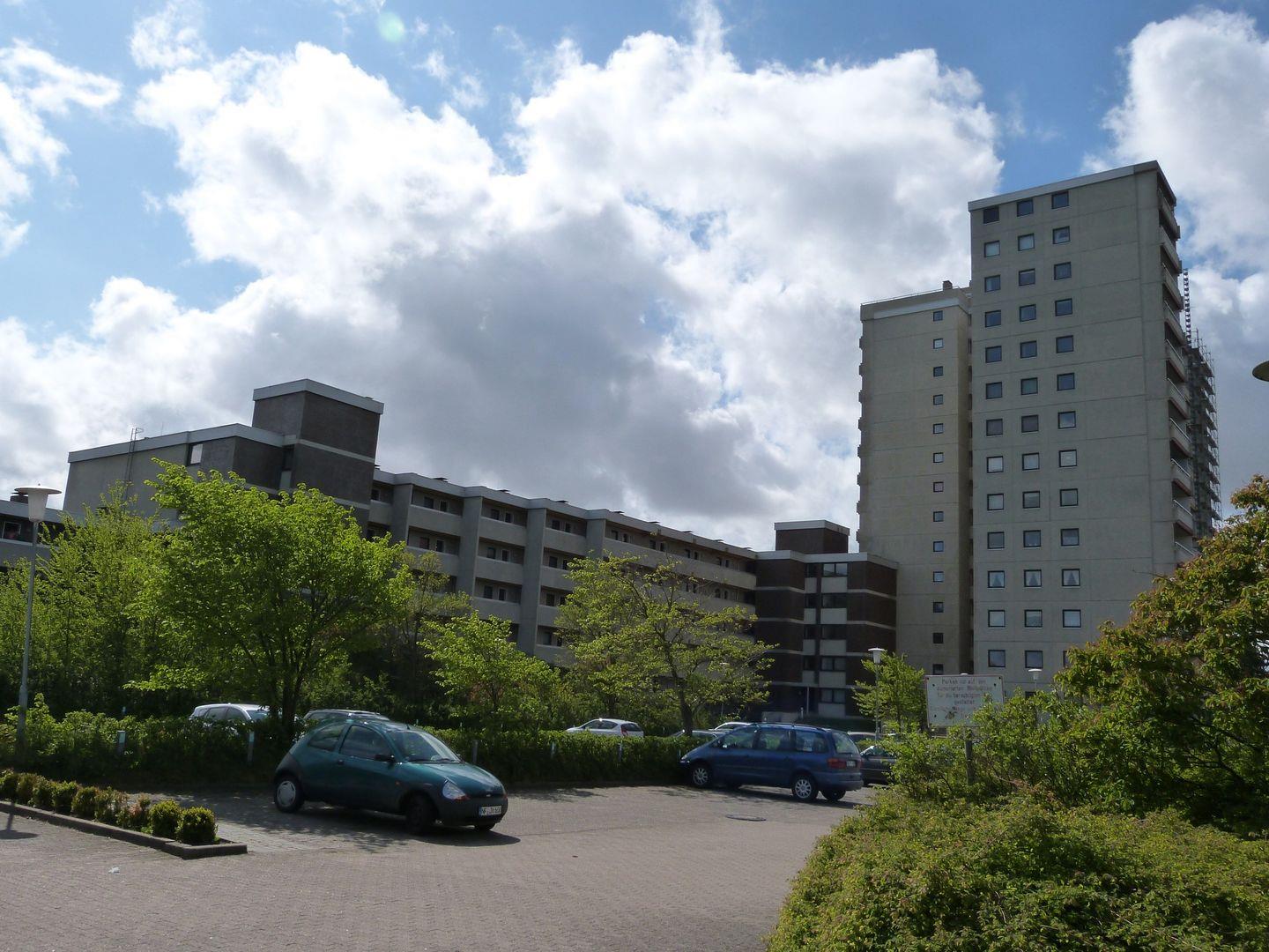 PKW-Stellplatz und gemeinschaftlicher Fahrrad-Abstellraum vorhanden, Münzwaschtrockner auf jeder 2. Etage, 2 Tischtennisräume und Tennisplatz, kleiner Spielplatz.