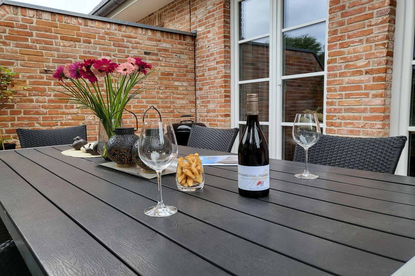 Zum Haus gehört ein übersichtlicher, komplett eingezäunter Garten sowie eine komplett möblierte Terrasse. In den Sommermonaten stehen ein typisch norddeutscher Strandkorb und ein Grill zur Nutzung bereit.