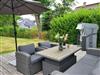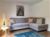 Das große Wohnzimmer ist modern und einladend eingerichtet. Neben dem Zugang zur Terrasse bietet es eine gemütliche Sofagarnitur nebst komfortablem Sessel. Für die multimediale Unterhaltung sorgen hier kostenfreies W-LAN und ein Flachbild-TV.