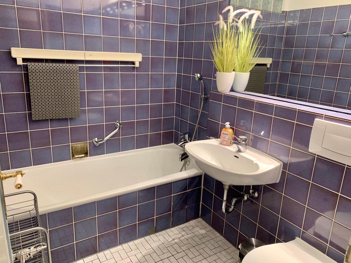 Duschbad mit WC sowie Badezimer Badewanne mit WC.